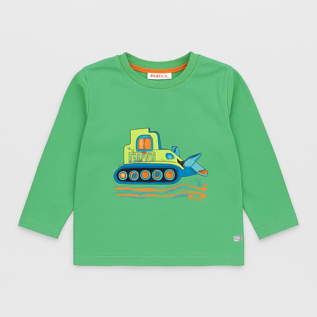 Questa simpatica t-shirt a maniche lunghe di marca Lullaby è perfetta per i piccoli amanti delle avventure! Realizzata in un morbido cotone verde, presenta un vivace design con un elegante escavatore che si fa strada tra il divertimento. Ideale per le giornate di gioco, offre comfort e libertà di movimento, grazie al taglio comodo. Anche se è un capo usato, si presenta in ottime condizioni e pronta a far sorridere il tuo bambino. Un'aggiunta colorata e giocosa al guardaroba di ogni piccolo esploratore!