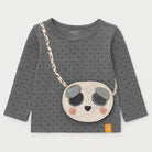Questa adorabile maglietta grigia con maniche lunghe è perfetta per le piccole amanti dello stile e del comfort! Realizzata in morbido cotone, presenta una fantasia di pois delicati che aggiungono un tocco di vivacità. Il divertente e simpatico applicazione a forma di panda sul petto, con occhi dolci e dettagli in pelliccia, la rende unica e accattivante. Ideale per le giornate fresche, si abbina facilmente a leggings o jeans, assicurando un look casual e giocoso. Nonostante sia un capo usato, è in ottime condizioni e pronta per accompagnare la tua bimba nelle sue avventure quotidiane!