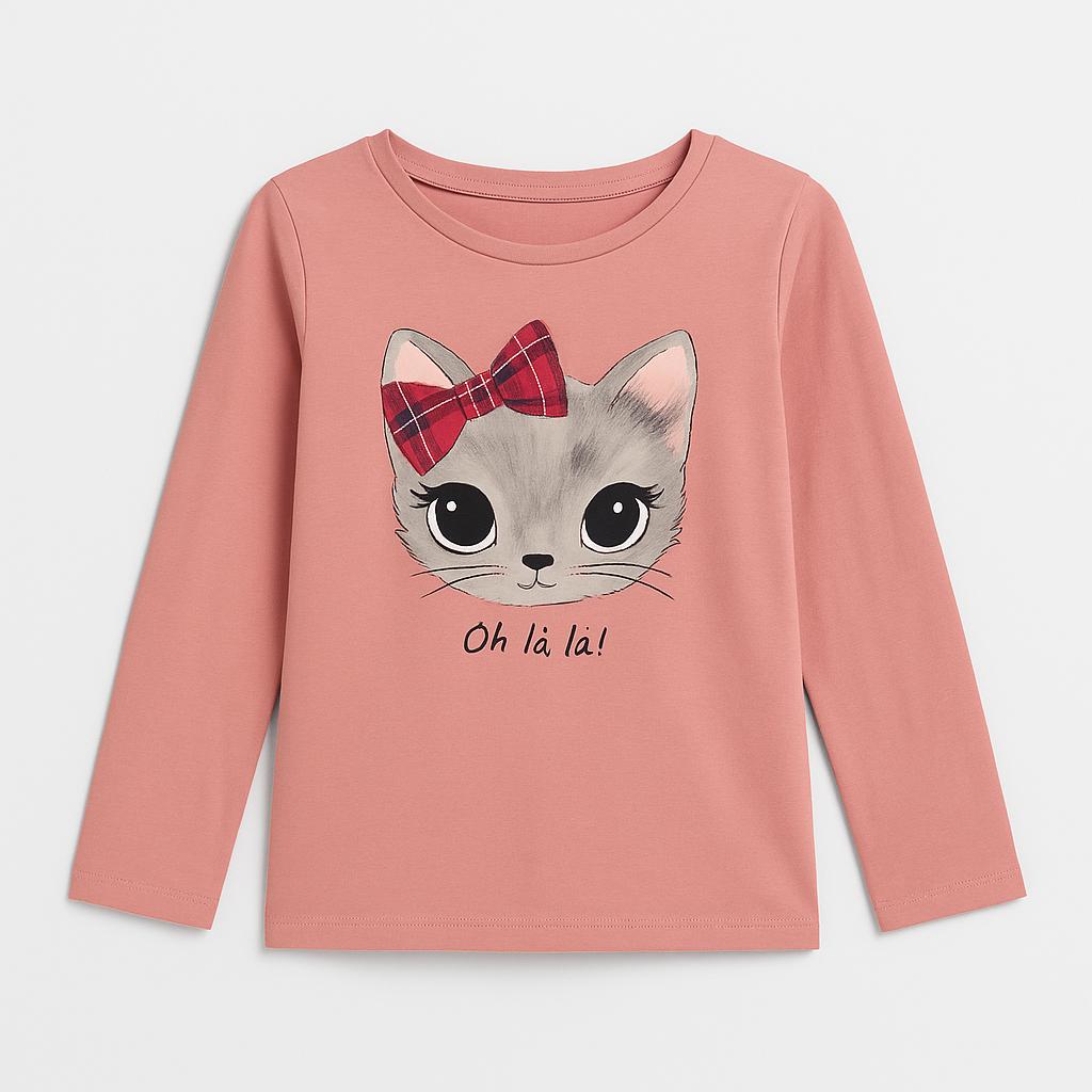 Questa adorabile maglietta a maniche lunghe è un vero tesoro per le piccole amanti degli animali! Realizzata in un morbido cotone rosa, presenta un dolcissimo graphic print di un gattino con occhi grandi e una tenera coroncina a quadretti. La scritta "Oh la la!" aggiunge un tocco di carattere e allegria. Il taglio comodo e il tessuto leggero la rendono perfetta per ogni occasione, dalle giornate di scuola ai momenti di gioco. Nonostante sia un capo usato, è in ottime condizioni e pronta a portare un sorriso sul volto della tua bambina! Un must-have per chi ama esprimere la propria personalità con stile!