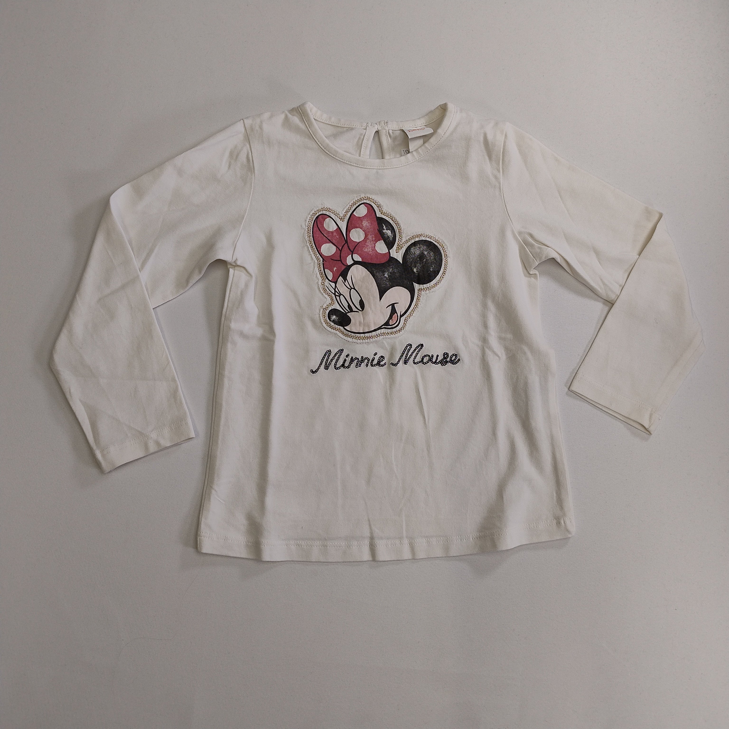 Questa deliziosa maglietta con maniche lunghe è un must per ogni piccola fan di Minnie Mouse! Realizzata in morbido cotone bianco, è perfetta per ogni occasione. Sul davanti, un'adorabile stampa di Minnie con il suo iconico fiocco rosso aggiunge un tocco di magia e divertimento. Il design semplice e il taglio comodo la rendono ideale per giocare o partecipare a feste. Nonostante sia un capo usato, è in ottime condizioni e pronto per essere indossato in nuove avventure!