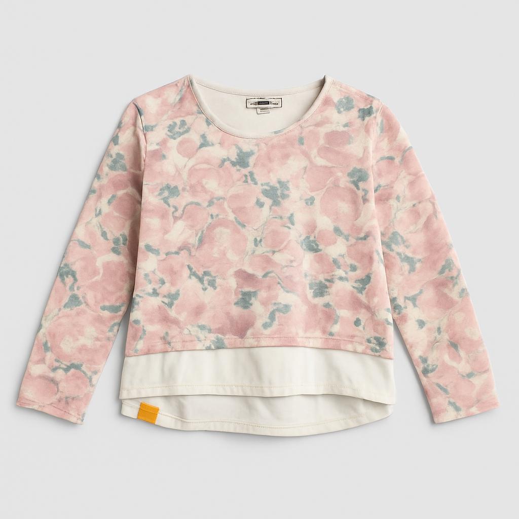 Questa dolce felpa a maniche lunghe è perfetta per le piccole pioniere del comfort e dello stile! Realizzata in morbido cotone, presenta un delizioso motivo floreale in tonalità pastello che evoca la freschezza della primavera. Il taglio ampio e il bordo inferiore arricciato offrono un look trendy e rilassato, ideale per le avventure quotidiane. Usata, ma in ottime condizioni, è pronta a portare un tocco di allegria e stile nel guardaroba della tua piccola!