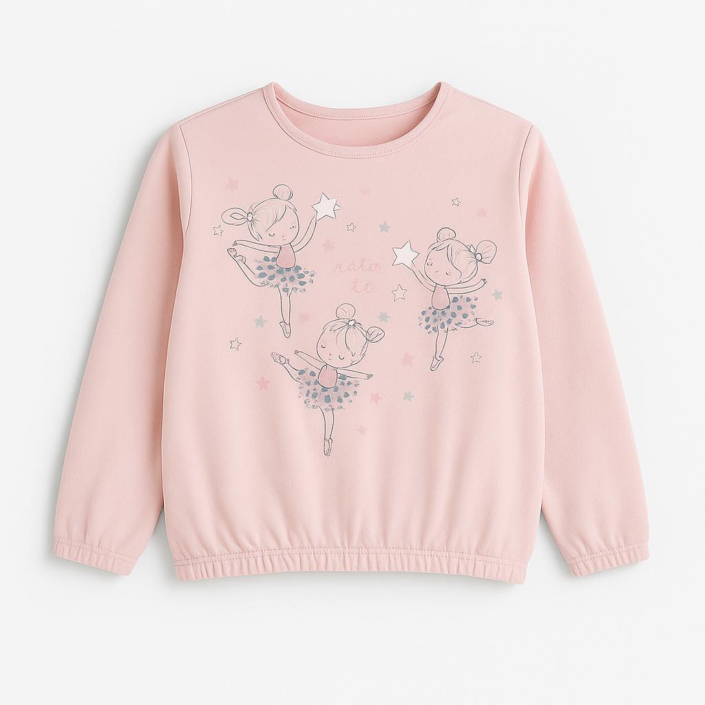 Questa adorabile maglietta rosa, perfetta per le piccole sognatrici, è un vero tesoro! Realizzata in morbido cotone, offre comfort e calore per le giornate più fresche. Sul frontale, una dolce stampa di ballerine danzanti circondate da stelle colorate incanta e porta un tocco di magia. Le maniche lunghe e il taglio leggermente svasato donano un look giocoso e alla moda. Nonostante sia un capo usato, è in ottime condizioni, pronta a far brillare il guardaroba della tua bambina! Un'ottima scelta per le piccole amanti della danza!