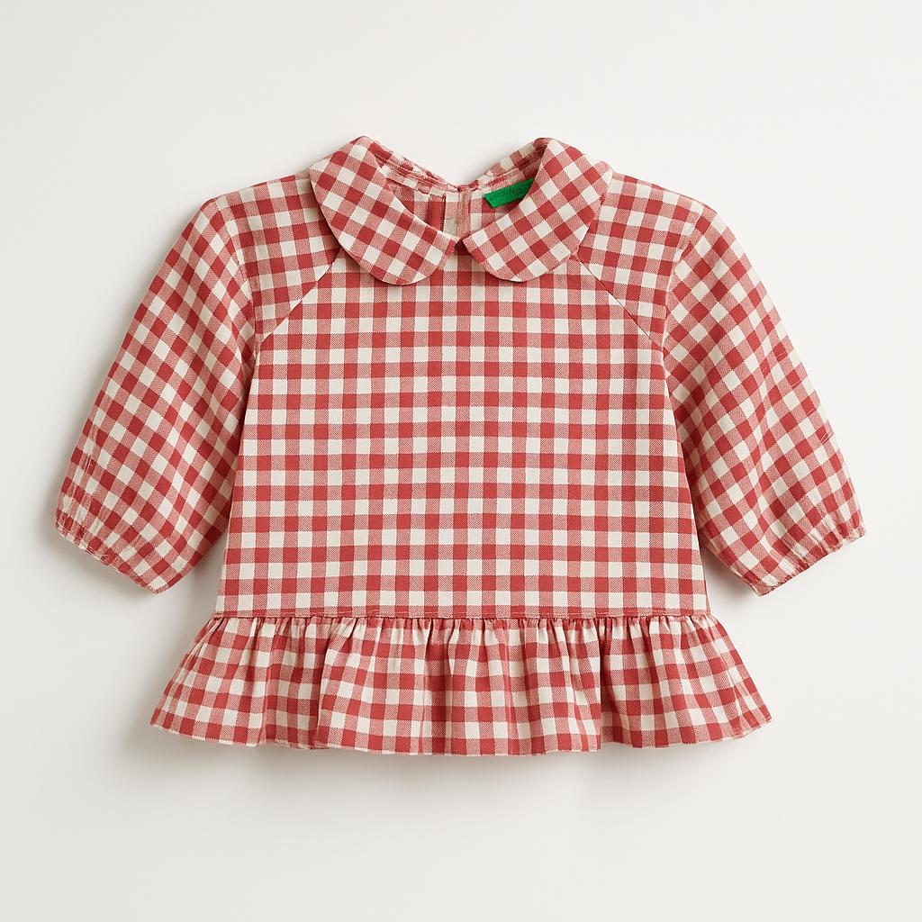 Questo adorabile top a quadretti rossi e bianchi è perfetto per le piccole fashioniste! Con un delizioso colletto e maniche a 3/4, aggiunge un tocco di eleganza a qualsiasi outfit. La voluminosa balza in fondo dona carattere e movimento, ideale per giocare e divertirsi. Realizzato in cotone morbido, è comodo da indossare tutto il giorno. Anche se usato, si presenta in ottime condizioni e pronto per nuove avventure! Un capo versatile, perfetto per abbinamenti casual o per occasioni speciali!