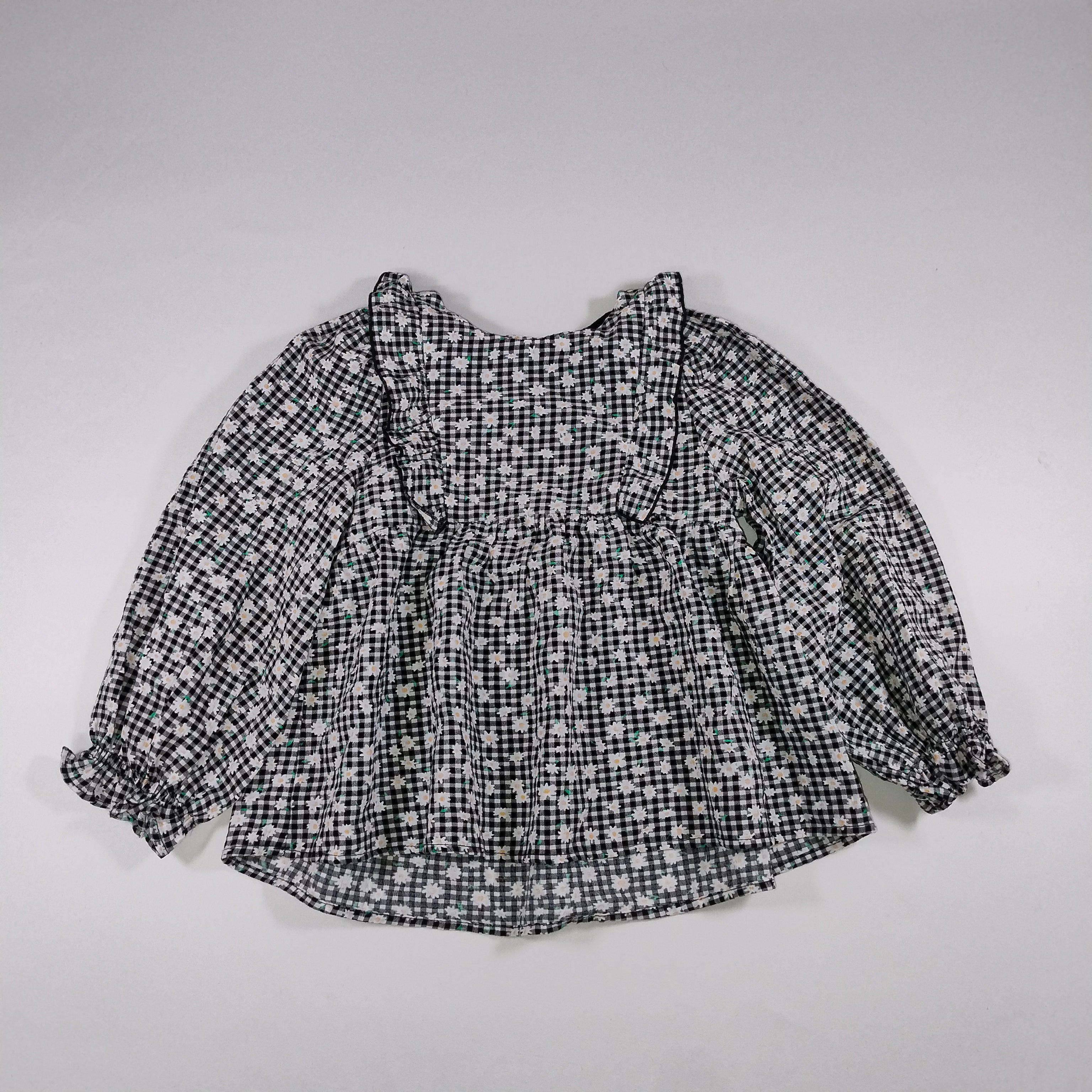 Questa deliziosa blusa a quadretti è perfetta per le piccole sognatrici! Realizzata in un tessuto leggero e traspirante, presenta un motivo a scacchi eleganti in bianco e nero, arricchito da delicati dettagli floreali. Le maniche lunghe con polsini arricciati donano un tocco romantico, mentre il colletto ampio aggiunge un tocco vintage e raffinato. Anche se usata, la blusa si trova in ottime condizioni, pronta a far brillare ogni outfit. Ideale per le occasioni speciali o per un look informale, è un capo che accompagnerà le piccole verso nuove avventure con stile!