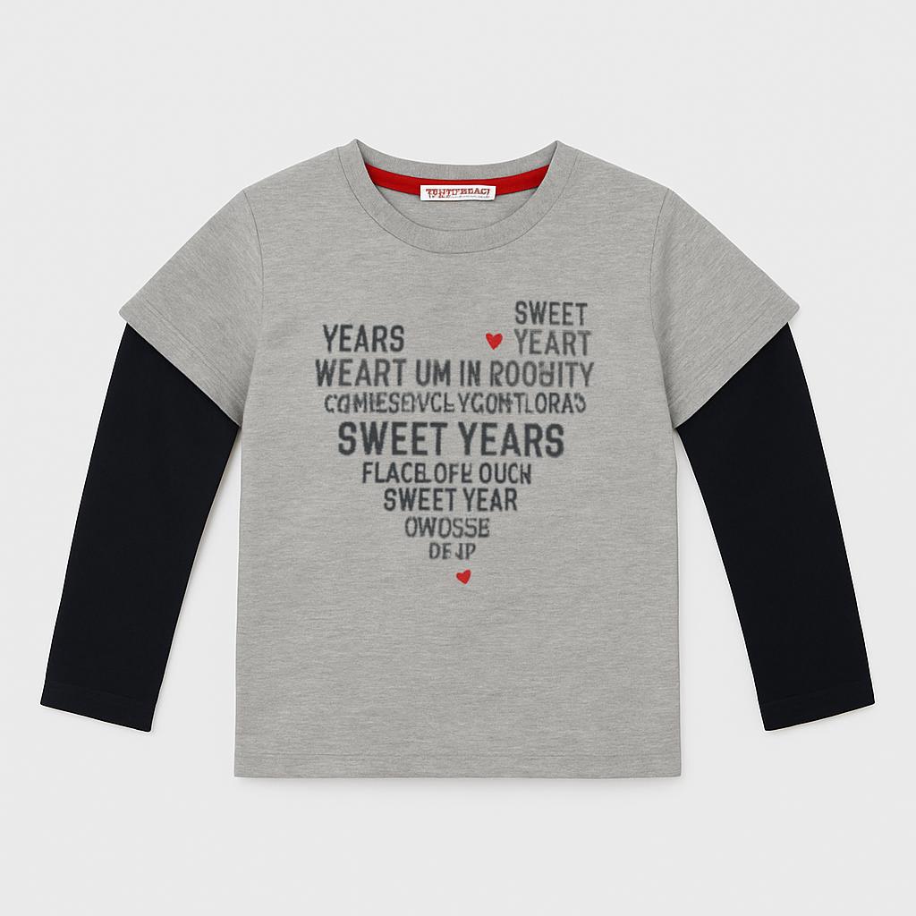 Questa adorabile maglietta a maniche lunghe è perfetta per le piccole fashioniste! Realizzata in morbido cotone grigio, è decorata con un dolce cuore composto da scritte colorate che esprimono amore e gioia. Le maniche blu scuro donano un tocco di contrasto, rendendo il look ancora più originale. Ideale per le giornate autunnali, può essere abbinata facilmente con jeans o leggings per un outfit comodo e stiloso. Nonostante sia un capo usato, è in ottime condizioni e pronto per essere indossato dalla tua piccola!