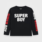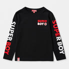 Preparati a far brillare il guardaroba del tuo piccolo con questa fantastica t-shirt nera di Superboy! Realizzata in un morbido tessuto, questa maglietta a maniche lunghe è perfetta per ogni avventura. Il design audace la rende un'ottima scelta per i piccoli esploratori: il logo "SUPER BOY" in bianco e rosso sul davanti e lungo le maniche aggiunge un tocco trendy e dinamico. Nonostante sia un capo usato, si presenta in buone condizioni, pronto per essere indossato in giochi all'aperto o durante il tempo libero. Un must-have per i piccoli che vogliono essere alla moda!