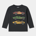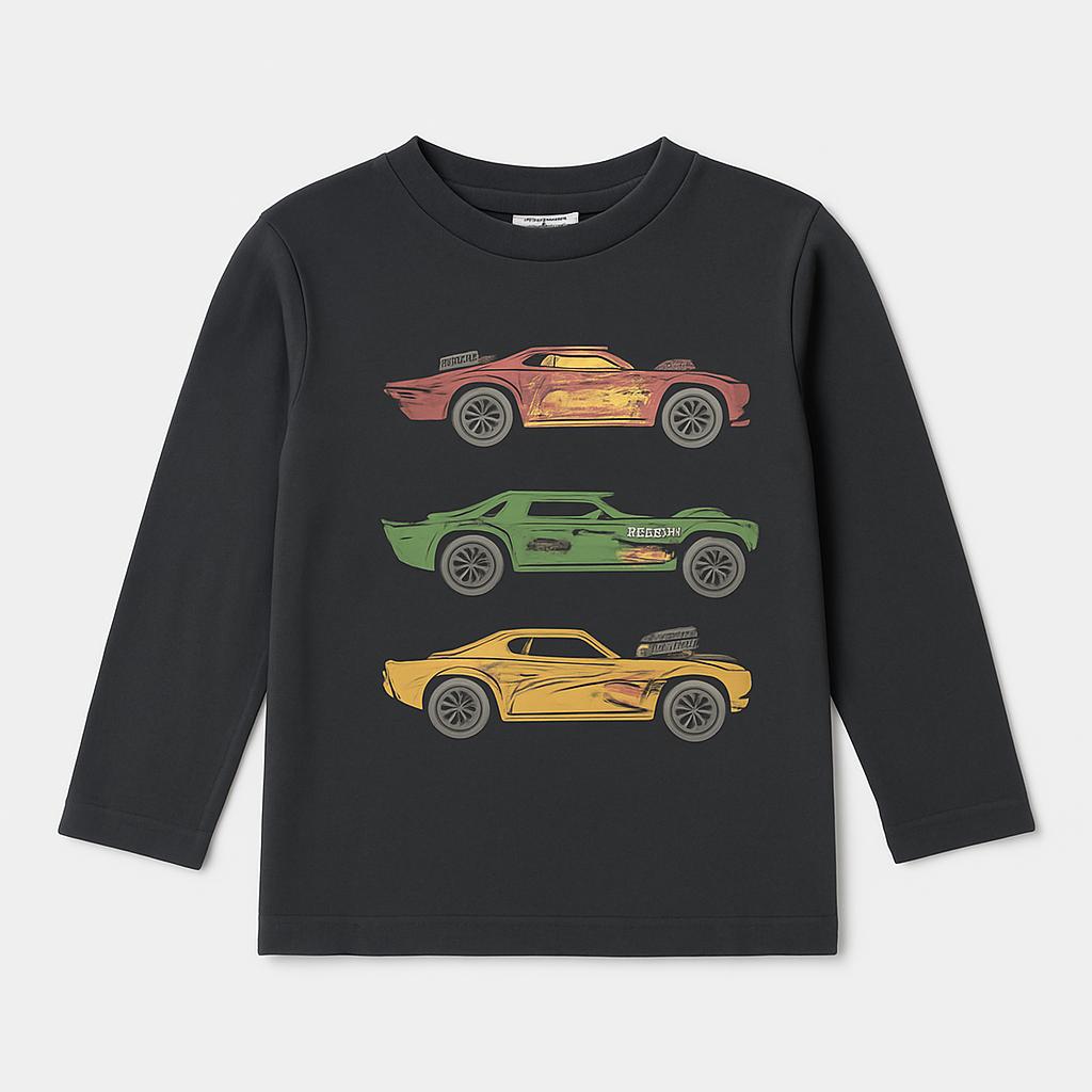 Questo divertente maglione a maniche lunghe, ideale per piccoli amanti delle auto, renderà il guardaroba del tuo bambino ancora più vivace! Realizzato in morbido cotone, il tessuto grigio scuro è decorato con tre magnifiche grafiche di auto da corsa, pronte a scattare verso l'avventura. Le maniche lunghe offrono calore e comfort, perfetti per le fresche giornate autunnali. Anche se è un capo usato, si presenta in ottime condizioni, pronto a essere indossato da un piccolo pilota! Un'ottima scelta per chi ama coccolare il proprio stile con un tocco di velocità!