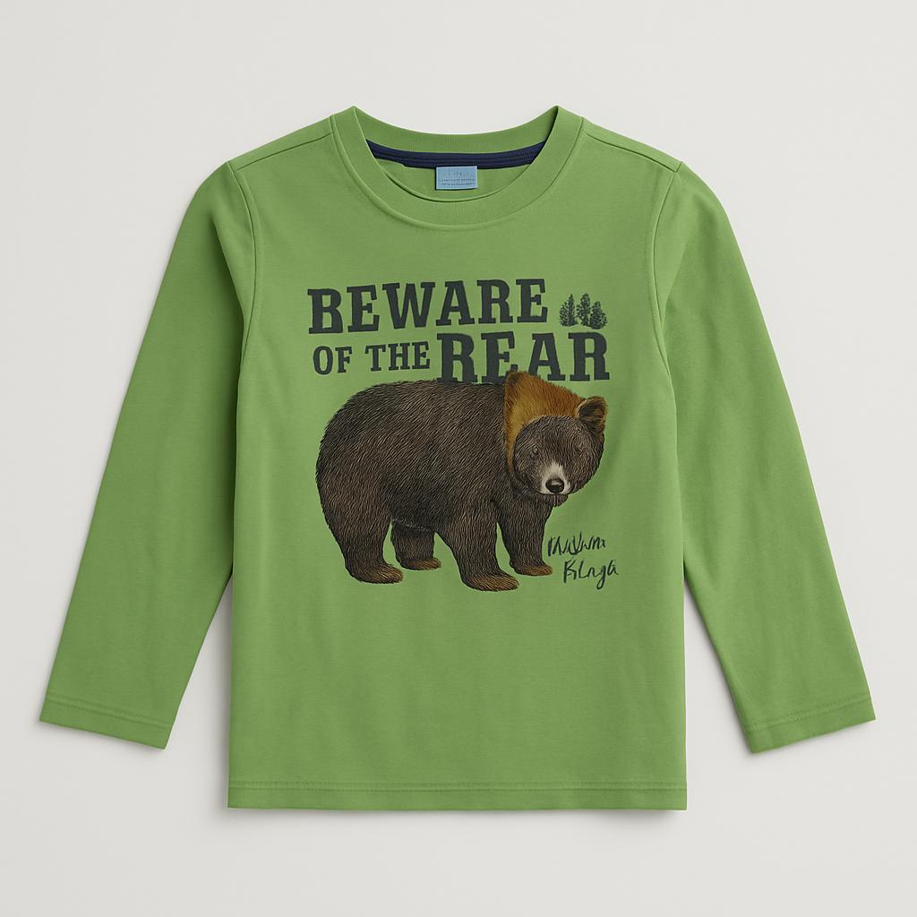 Questa adorabile maglietta a maniche lunghe è perfetta per i piccoli esploratori! Realizzata in un morbido tessuto verde chiaro, presenta un simpatico orso ricamato che invita a scoprire la natura. La frase "BEWARE OF THE BEAR!" aggiunge un tocco di avventura e divertimento. Ideale per le giornate fresche, questo capo usato è in buone condizioni e offre comfort e stile, rendendolo un'ottima scelta per giochi all'aperto o pomeriggi in famiglia! Una maglietta da indossare con orgoglio per ogni piccolo amante della natura!