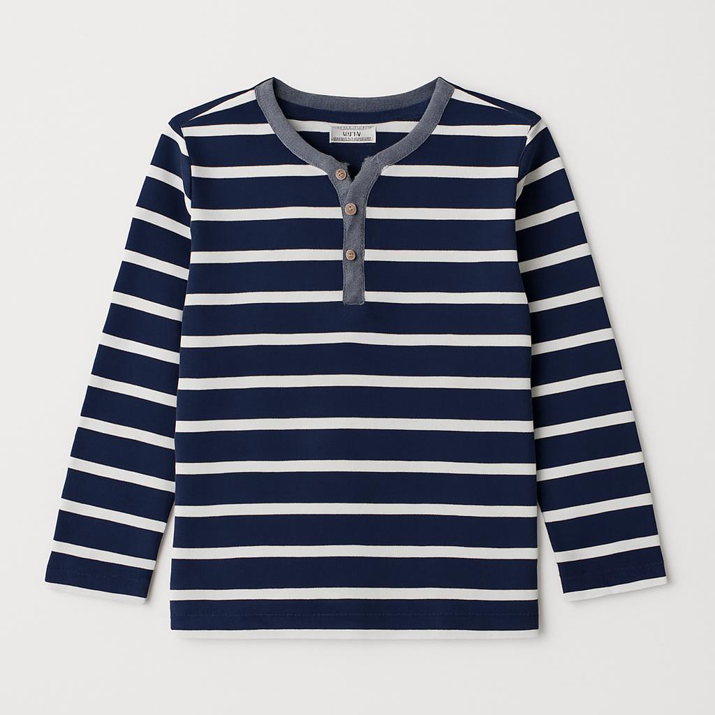 Questa irresistibile maglietta a righe, in un classico mix di blu navy e bianco, è il capo perfetto per i piccoli esploratori! Realizzata in un morbido cotone, garantisce comfort e libertà di movimento. Il dettaglio del colletto con bottoni aggiunge un tocco di originalità e stile, rendendola ideale per ogni occasione, dalle giornate di gioco al parco a un pomeriggio in famiglia. Nonostante sia un capo usato, è in ottime condizioni e pronta a diventare l'alleato preferito del guardaroba del tuo bambino!