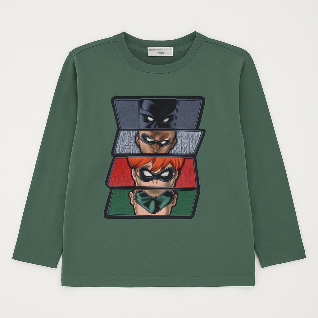 Questo splendido maglione a maniche lunghe unirà senza dubbio comfort e stile nel guardaroba del tuo piccolo supereroe! Realizzato in un soffice e caldo tessuto verde, presenta un'illustrazione vibrante dei famosi supereroi. Sul fronte, potrai ammirare i volti iconici di Batman, Robin e Green Lantern, perfetti per stimolare l'immaginazione. Le maniche lunghe garantiscono una protezione ideale nelle giornate più fresche, rendendolo un capo versatile per ogni avventura. Nonostante sia usato, il maglione è in ottime condizioni e pronto a essere indossato da un nuovo eroe! Un presente ideale per i piccoli fan dei supereroi!