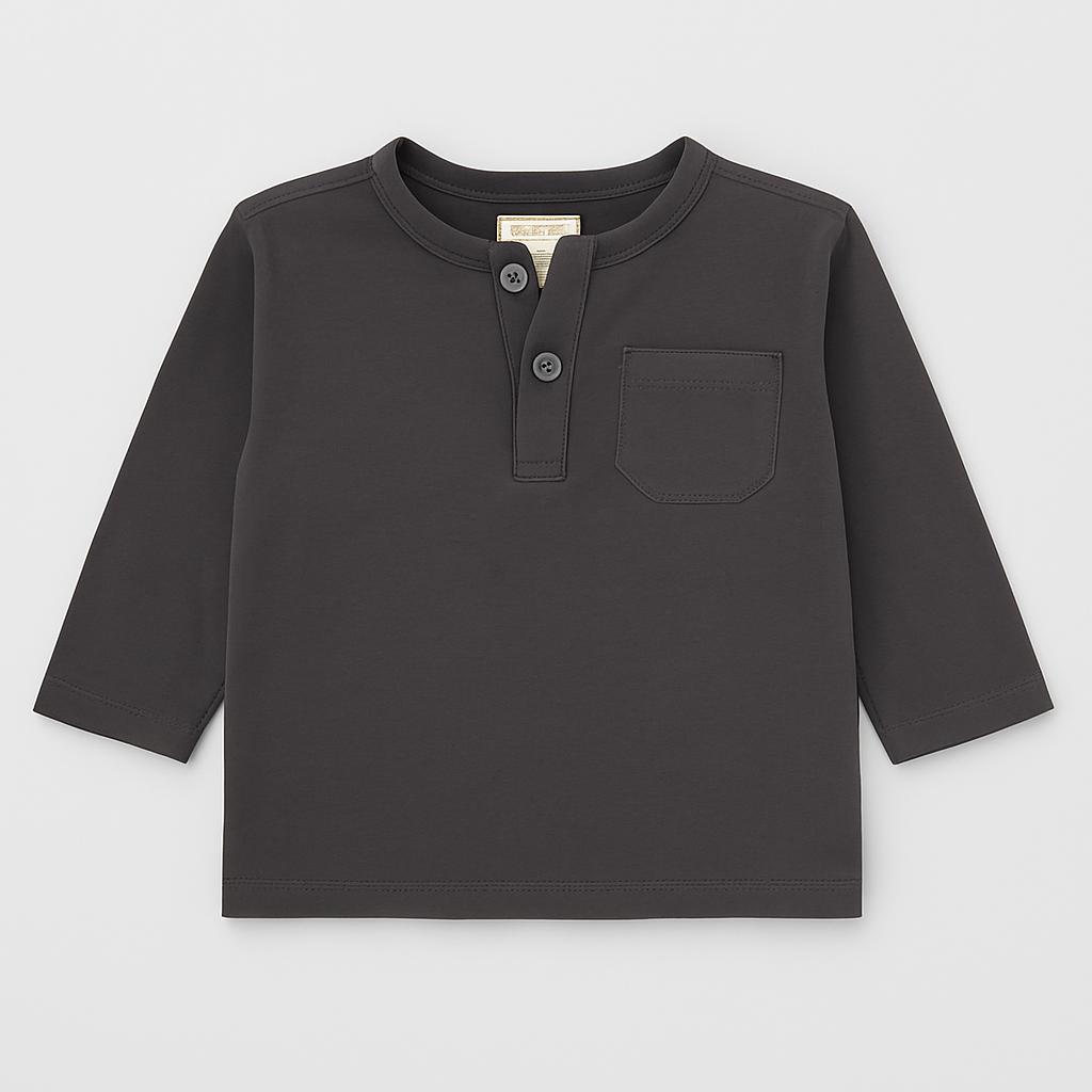 Questo raffinato e versatile maglione a maniche lunghe in morbido cotone è perfetto per i piccoli stilisti! Di un elegante grigio scuro, presenta un collo a polo con pratici bottoncini e una piccola tasca sul petto, aggiungendo un tocco di originalità. Ideale per le mezze stagioni, questo capo è comodo e facile da abbinare a jeans o pantaloni. Nonostante sia un articolo usato, è in ottime condizioni, pronto per essere indossato da un bimbo alla moda. Un elemento essenziale per un look casual e sofisticato!