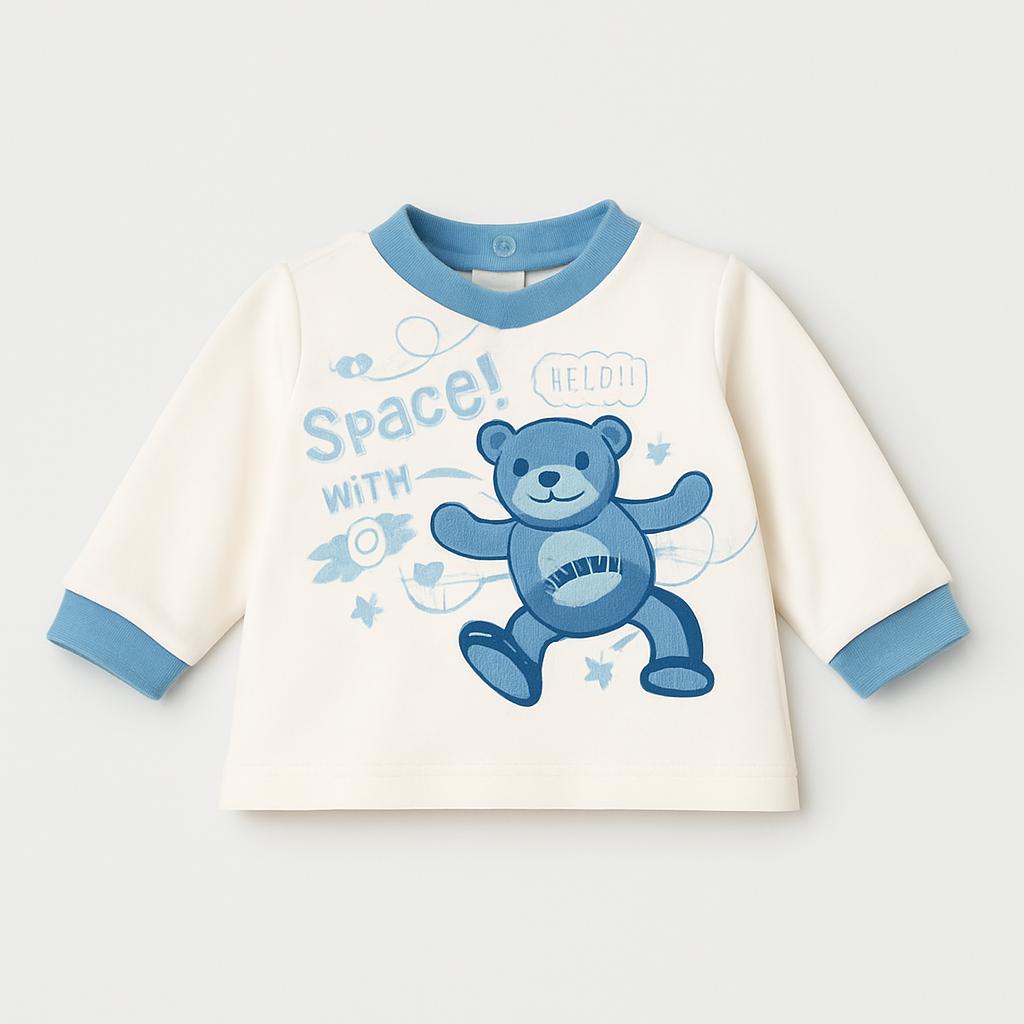 Questa adorabile maglietta a maniche lunghe è perfetta per piccoli esploratori! Realizzata in morbido cotone bianco con dettagli azzurri, mette in risalto un tenero orsetto che invita a esplorare lo spazio. La scritta “SPACE with” aggiunge un tocco giocoso, rendendola ideale per le avventure quotidiane. Grazie al suo design comodo e ai materiali di qualità, è perfetta per ogni occasione, dai giochi al parco a una giornata a casa. Nonostante sia un capo usato, si presenta in ottime condizioni e pronto per accompagnare il tuo bimbo in tante nuove scoperte!