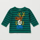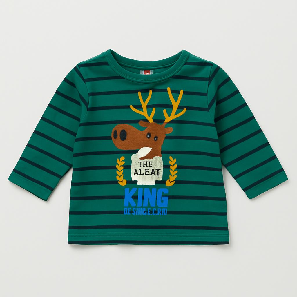 Questo adorabile maglione a righe verdi e blu è perfetto per il tuo piccolo esploratore! Realizzato in morbido cotone, offre comfort e calore nelle fresche giornate d'autunno. Sul davanti, un simpatico motivo di un cervo con corna decorate e una delicata scritta rende il look giocoso e accattivante. Le maniche lunghe e il taglio leggermente ampio garantiscono libertà di movimento per giochi e avventure. Nonostante sia un capo usato, si presenta in ottime condizioni, pronto per essere indossato con entusiasmo e allegria! Un must-have per i piccoli amanti della natura!
