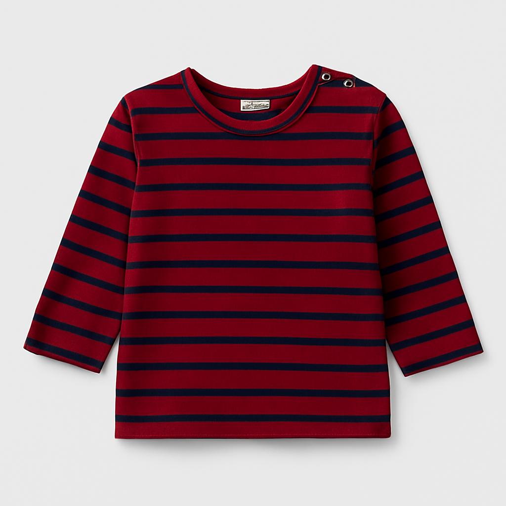 Deliziosa maglietta a righe per bambini, perfetta per i piccoli esploratori! Questa t-shirt presenta una classica combinazione di rosso e blu scuro, ideale per un look casual e trendy. Le maniche lunghe la rendono perfetta per le fresche giornate primaverili o autunnali, mentre il pratico abbottonaggio sulla spalla facilita l'indossamento. Nonostante sia un capo usato, si presenta in ottime condizioni, pronta per scrivere nuove avventure nei guardaroba. Un must-have per ogni piccolo amante dello stile!