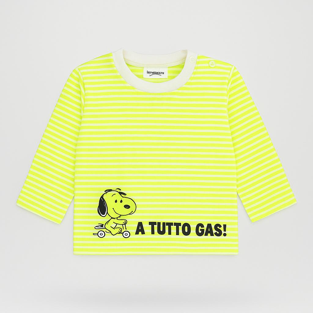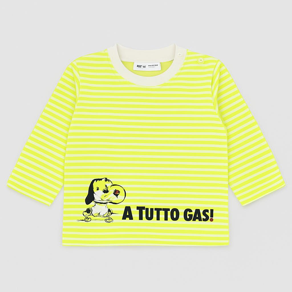 Questa vivace maglietta a righe giallo fluorescente è perfetta per i piccoli scatenati! Con maniche lunghe, è ideale per le fresche giornate autunnali. Il simpatico soggetto di un cagnolino in corsa, accompagnato dalla scritta “A TUTTO GAS!”, aggiunge un tocco di allegria e divertimento. Realizzata in morbido cotone, è comoda e pratica per ogni avventura. Nonostante sia un capo usato, si presenta in ottime condizioni, pronta per accompagnare il tuo bimbo in giochi senza fine! Un'ottima scelta per uno stile giocoso e colorato!