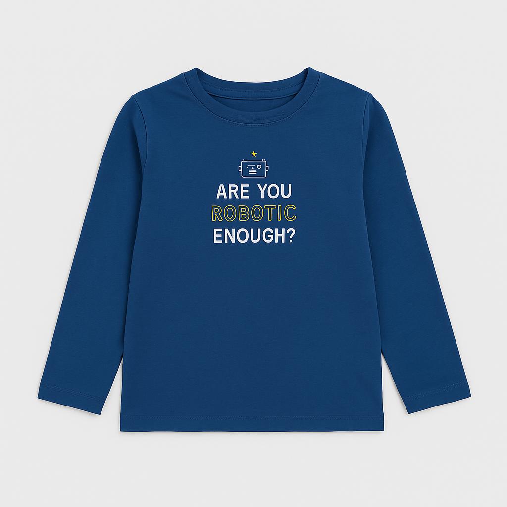 Questa adorabile maglietta a maniche lunghe è perfetta per i piccoli amanti della tecnologia! Di un bel blu intenso, il capo è impreziosito dalla simpatica scritta “ARE YOU ROBOTIC ENOUGH?” in colori vivaci, che stimola la curiosità e la fantasia. Realizzata in cotone morbido, offre un comfort ideale per le giornate di avventure e gioco. La chiusura con bottoncino sulla spalla facilita l’indossamento, mentre il suo stile casual la rende perfetta per un look allegro e spensierato. Nonostante sia un capo usato, è in ottime condizioni e pronto a essere indossato da un piccolo esploratore!