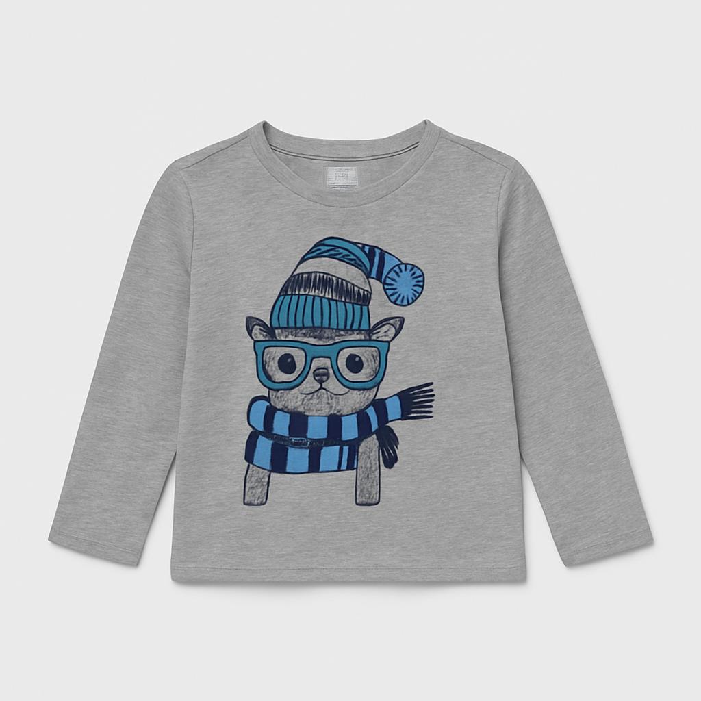 Questa adorabile maglietta grigia a maniche lunghe è perfetta per i piccoli amanti degli animali! Con un simpatico design di un lama che indossa occhiali e un cappello di lana, porta un tocco di allegria e originalità al guardaroba. Realizzata in un morbido cotone, offre comfort e calore per le fresche giornate autunnali. È un capo usato in ottime condizioni, ideale per i piccoli esploratori che vogliono esprimere il loro stile giocoso. Non lasciarti sfuggire questa gemma per un look trendy e divertente!
