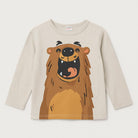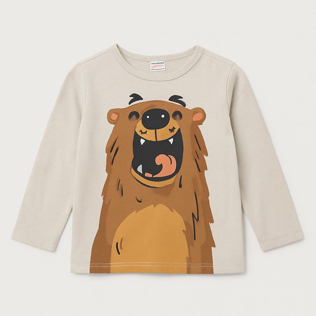 Questa simpatica maglietta a maniche lunghe è perfetta per i piccoli amanti degli animali! Realizzata in morbido cotone, il tono neutro e caldo del beige si abbina facilmente a qualsiasi outfit. Il grande orso che sorride sul davanti porta un sorriso a chiunque la indossi, rendendola ideale per le avventure quotidiane. Con il suo taglio comodo, è perfetta per il gioco e per rilassarsi. Sebbene sia usata, si presenta in ottime condizioni, pronta a far divertire un altro piccolo esploratore! Un capo divertente e pratico da avere nel guardaroba!