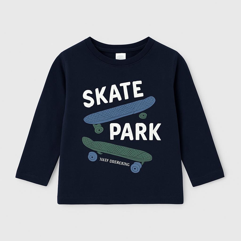Questo adorabile maglione a maniche lunghe è perfetto per i piccoli amanti dello skate! Realizzato in un morbido cotone, il colore blu scuro funge da sfondo ideale per la vivace stampa "SKATE PARK" e le tavole da skate colorate. Comodo e pratico, è l'ideale per le avventure quotidiane, dalle corse nel parco agli incontri con gli amici. Anche se usato, si presenta in ottime condizioni, pronto per essere indossato da un nuovo giovane skater. Un capo casual e trendy che promette tante giornate di divertimento!