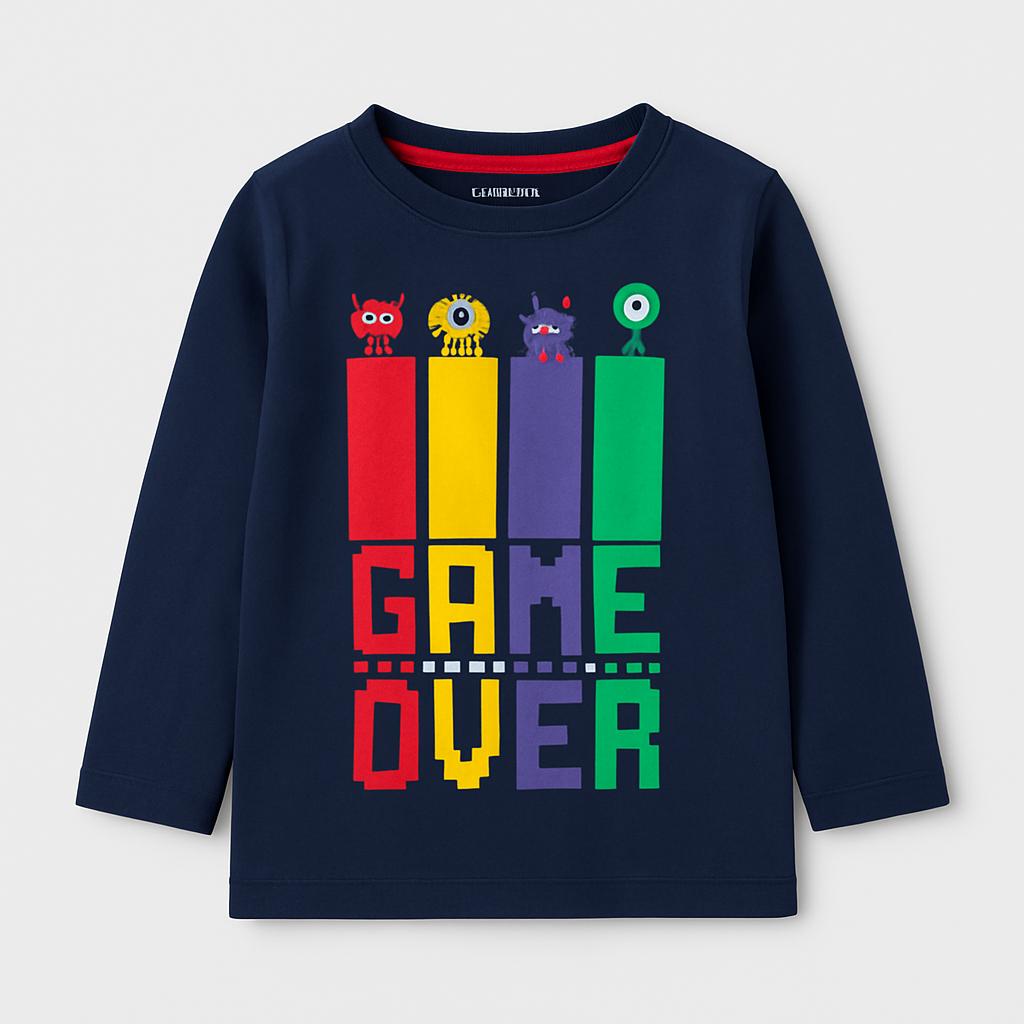 Questa fantastica maglietta a maniche lunghe, firmata "Primigi", è perfetta per i piccoli amanti del gioco! Realizzata in morbido cotone blu scuro, presenta un vivace design multicolore con la scritta "GAME OVER" e divertenti mostriciattoli. Ideale per le avventure quotidiane, mantiene il tuo bambino comodo e alla moda. Anche se usata, si trova in ottime condizioni, pronta a portare un pizzico di stile e allegria nel guardaroba! Un capo ideale per i piccoli gamer!