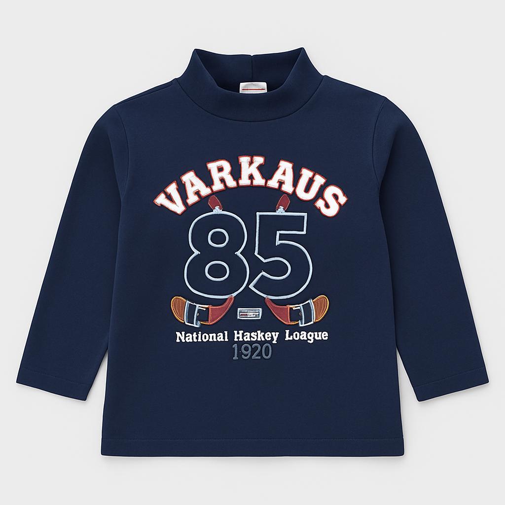 Questo adorabile maglione a maniche lunghe è perfetto per i piccoli amanti dello sport! Realizzato in un morbido cotone navy, è arricchito da una vivace grafica che celebra il mondo dell'hockey: "Varkaus 85" in bold e le eleganti stecche incrociate. La chiusura sul collo a bottone rende questo capo pratico e facile da indossare. Ideale per le giornate fresche, questo maglione unisce comfort e stile, permettendo ai tuoi bambini di esprimere la loro passione per il gioco. In ottime condizioni, è un must-have per i futuri campioni!