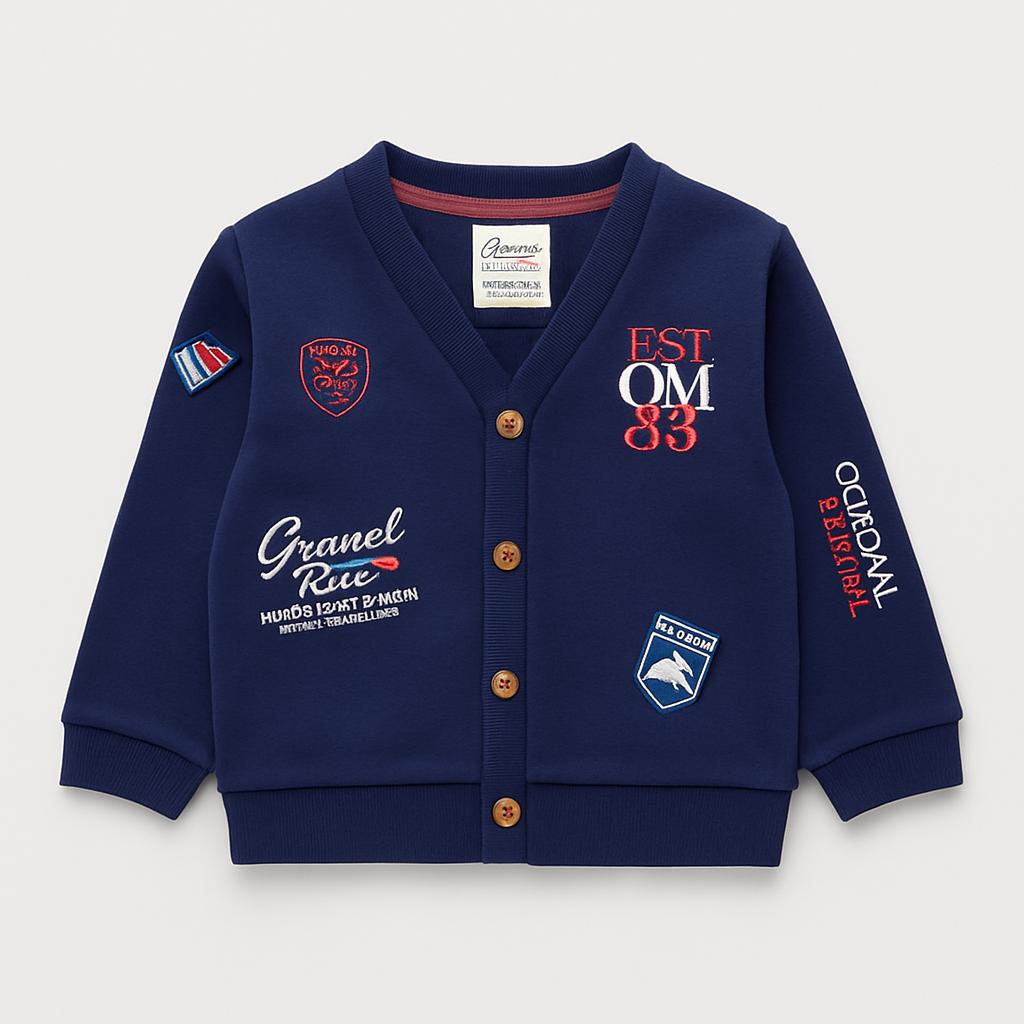 Questo affascinante giubbotto cardigan è l'aggiunta perfetta al guardaroba del tuo piccolo! Realizzato in morbido materiale, offre comfort e calore senza compromettere lo stile. Il colore blu intenso si abbina facilmente a qualsiasi outfit, mentre le applicazioni e le patch decorative donano un tocco di originalità e carattere. Con i suoi pratici bottoni, è facile da indossare e togliere, ideale per le avventure quotidiane. Nonostante sia un capo usato, si presenta in ottime condizioni e sarà perfetto per rendere il look del tuo bambino davvero speciale!