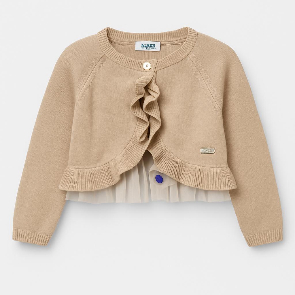 Questo adorabile cardigan di marca Chicco è il complemento perfetto per il guardaroba della tua piccola! Realizzato in morbidissimo cotone, il colore neutro e delicato rende questa giacca versatile per ogni outfit. La parte anteriore è elegante, con una delicata ruches che aggiunge un tocco di romanticismo, mentre il bordo in tulle sottolinea la sua femminilità. Le maniche lunghe assicurano comfort e calore, rendendola ideale per le fresche giornate primaverili e autunnali. Nonostante sia un capo usato, si presenta in ottime condizioni, pronto per accompagnare dolci momenti di gioco e avventure! Un must-have per le piccole fashioniste!