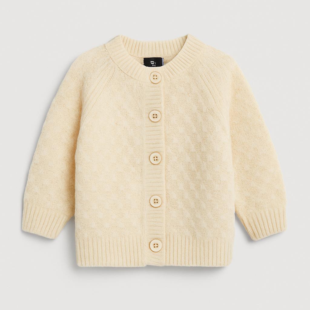 Questo adorabile cardigan in un delicato color crema è perfetto per le piccole principianti! Realizzato in un morbido filato, è caratterizzato da un caldo e accogliente design lavorato a maglia. I bottoni frontali in legno aggiungono un tocco rustico e affascinante. Le maniche a palloncino e l'ampio girocollo garantiscono un comfort senza pari, ideali per avventurine durante le fresche giornate autunnali. Sebbene sia un capo usato, si presenta in ottime condizioni, pronto per nuove avventure! Un must-have da aggiungere al guardaroba di ogni piccola fashionista.