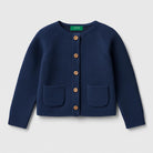 Questo adorabile cardigan in morbido maglione blu navy è il compagno ideale per le giornate fresche! Con un design classico e accogliente, presenta un’apertura frontale con bottoni in legno naturale e due pratiche tasche, perfette per custodire piccoli tesori. Le maniche lunghe e il taglio leggermente scalato donano un look trendy, mentre il tessuto caldo assicura il massimo comfort. Sebbene sia un capo usato, si presenta in ottime condizioni, pronto per essere indossato da una piccola fashionista che ama la praticità senza rinunciare allo stile! Un must-have per il guardaroba!