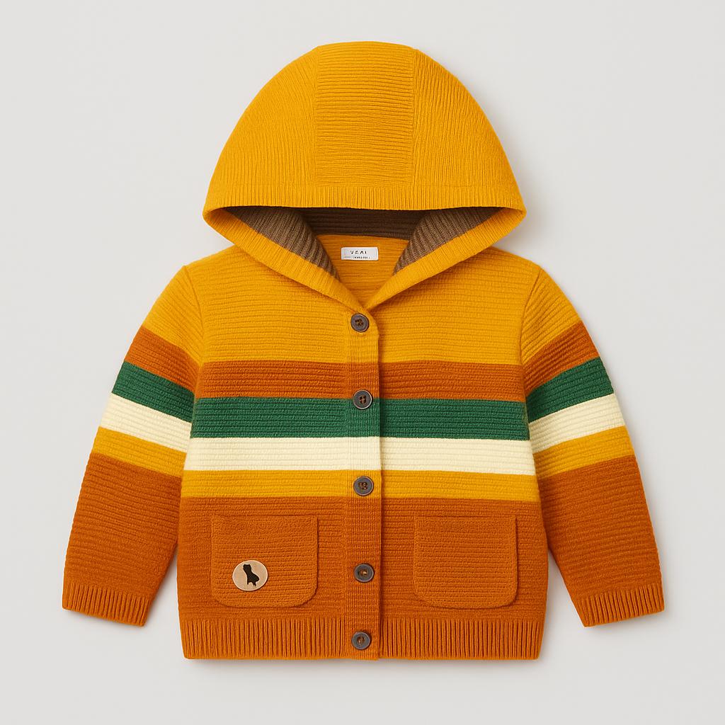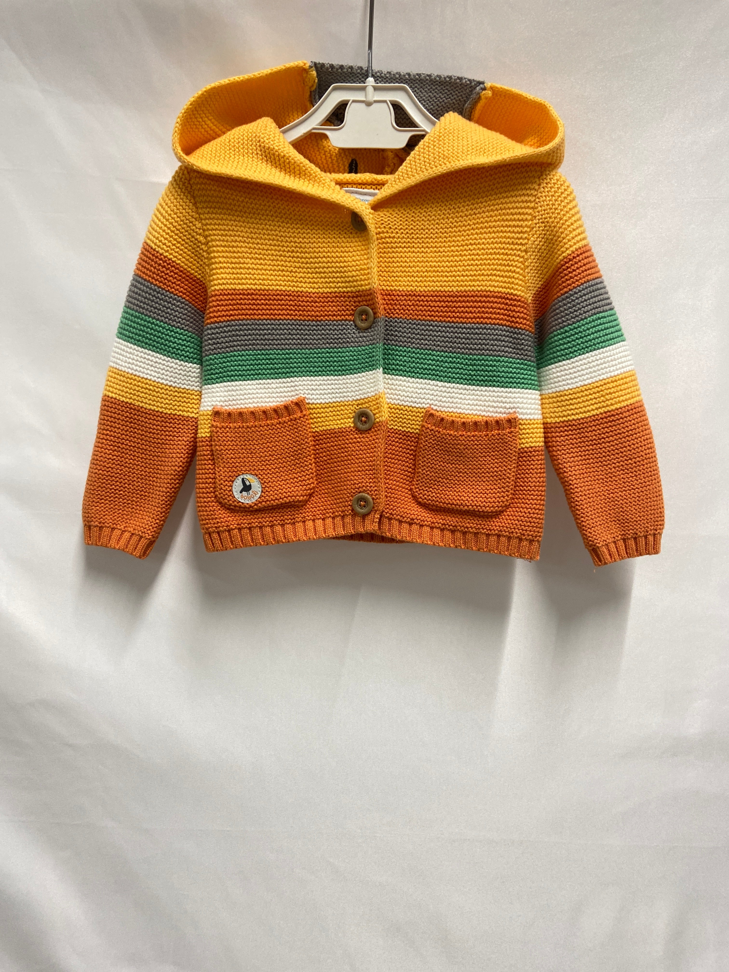 Questo adorabile cardigan con cappuccio è perfetto per le avventure dei più piccoli! Realizzato in morbido cotone, presenta una fantastica combinazione di colori autunnali: arancione, verde e bianco, che donano un tocco allegro e vivace. Le due tasche frontali aggiungono un elemento pratico, ideale per riporre piccoli tesori. La chiusura con bottoni garantisce comfort e facilità di vestibilità. Nonostante sia un pezzo usato, si presenta in ottime condizioni, pronto per accompagnare i vostri bambini nelle loro esplorazioni quotidiane! Un must-have per ogni guardaroba!
