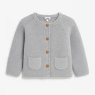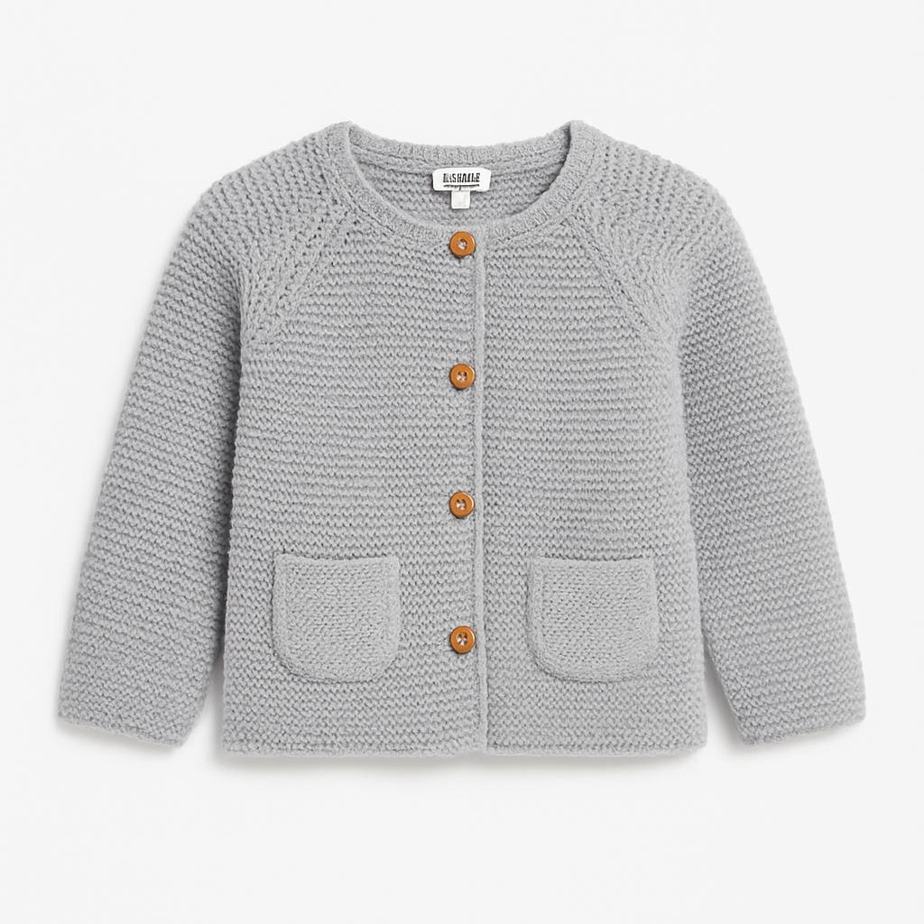 Questo delizioso cardigan grigio è il capo perfetto per le giornate fresche! Realizzato in morbido filo lavorato a maglia, presenta due pratiche tasche sul davanti e bottoni in legno che aggiungono un tocco di charme. La vestibilità comoda e il design semplice lo rendono facile da abbinare a qualsiasi outfit. Nonostante sia usato, si presenta in ottime condizioni e sarà una coccola per ogni piccolo nel loro guardaroba. Un must-have per le piccole esploratrici che adorano essere alla moda e comode!