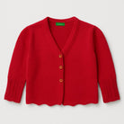 Questo adorabile cardigan rosso è un'aggiunta imperdibile al guardaroba della tua piccola! Realizzato in un morbido filato, presenta un caldo colore ciliegia che illumina ogni outfit. Con un delicato motivo lavorato sulle maniche e tre bottoni frontali, emana un'aria di dolcezza e stile. Le maniche a 3/4 offrono comfort e facilità di movimento, perfetto per le giornate fresche. Anche se è un capo usato, è in ottime condizioni e pronto per accompagnare la tua bimba in ogni avventura. Un must-have per un look vivace e alla moda!