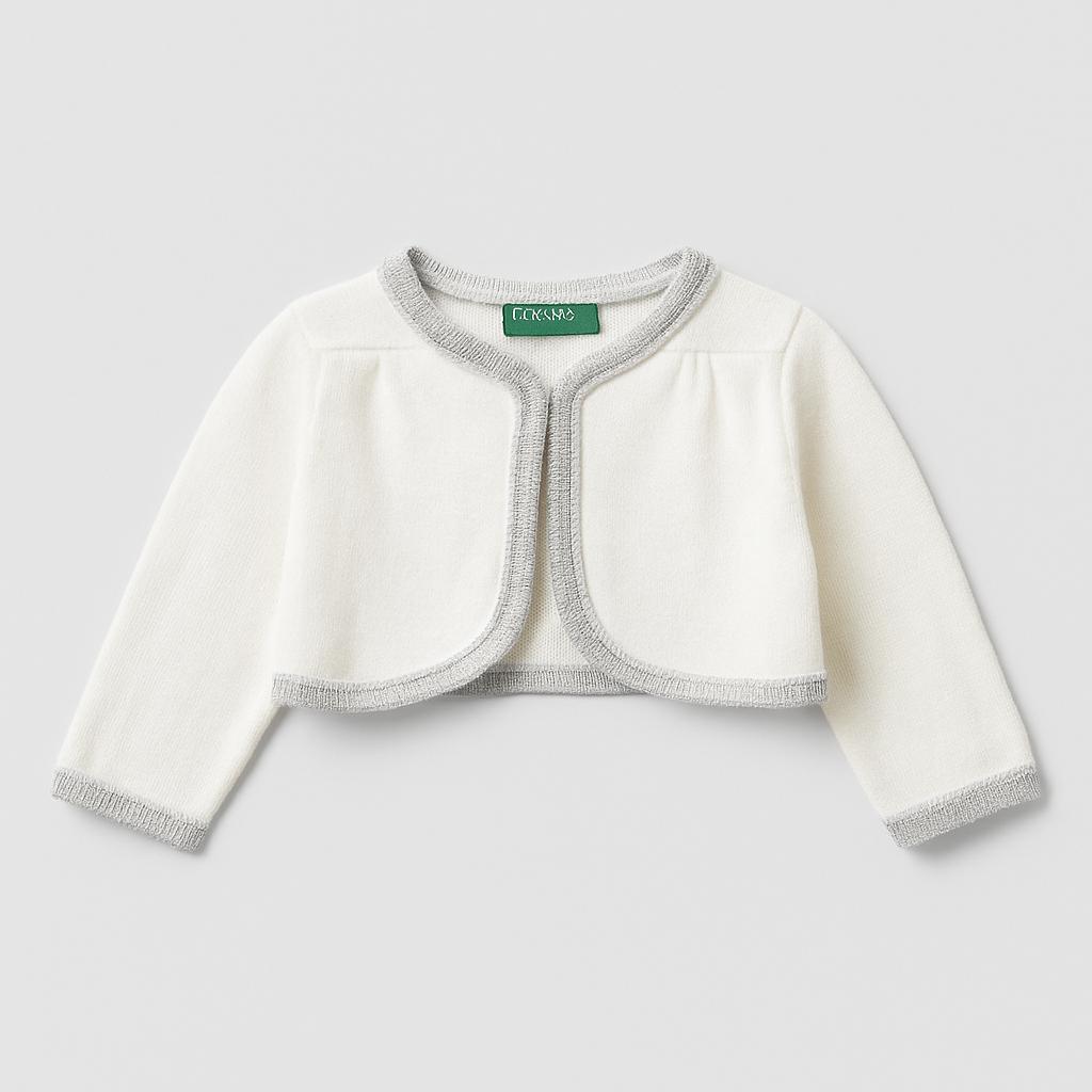 Questo adorabile cardigan bianco è il complemento perfetto per ogni outfit da bambina! Realizzato in un morbido misto cotone, presenta un delicato design con maniche lunghe e un elegante bordo argentato che gli conferisce un tocco di classe. La chiusura frontale rende facile l’indossarlo e toglierlo, mentre il suo stile versatile lo rende ideale per le fresche serate primaverili o per completare un look da cerimonia. Nonostante sia un capo usato, è in ottime condizioni e pronto a far brillare il guardaroba della tua piccola! Un must-have per ogni piccola fashionista!
