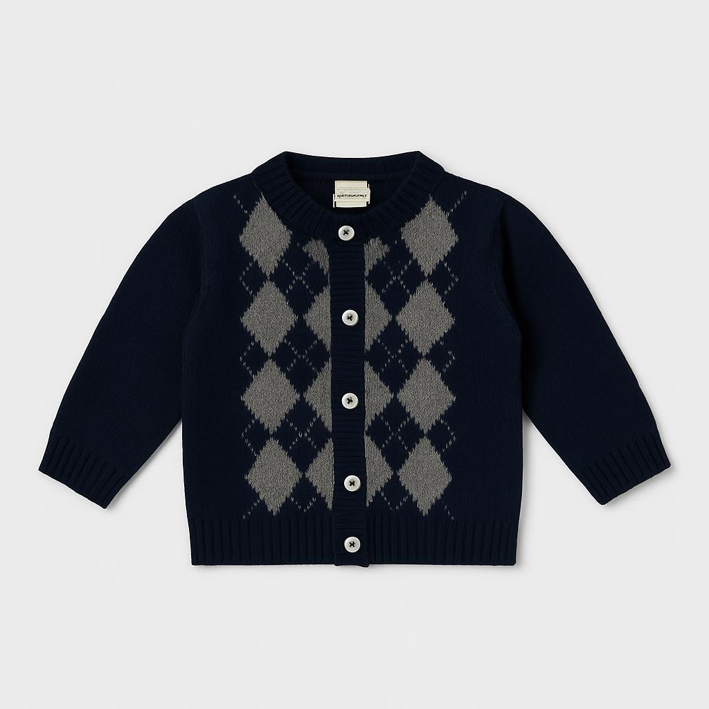 Questo elegante cardigan in nero con pattern a rombi grigi è il capo perfetto per le piccole pesti che amano un look chic! Realizzato in un morbido tessuto, offre comfort e calore, ideale per le giornate fresche. I bottoni frontali rendono facile indossarlo e sfilarlo, mentre le maniche lunghe assicurano una vestibilità comoda. Perfetto da abbinare a jeans o gonne, questo cardigan usato è in ottime condizioni e porterà un tocco di classe al guardaroba del tuo bambino! Un vero must-have per ogni piccola modaista!