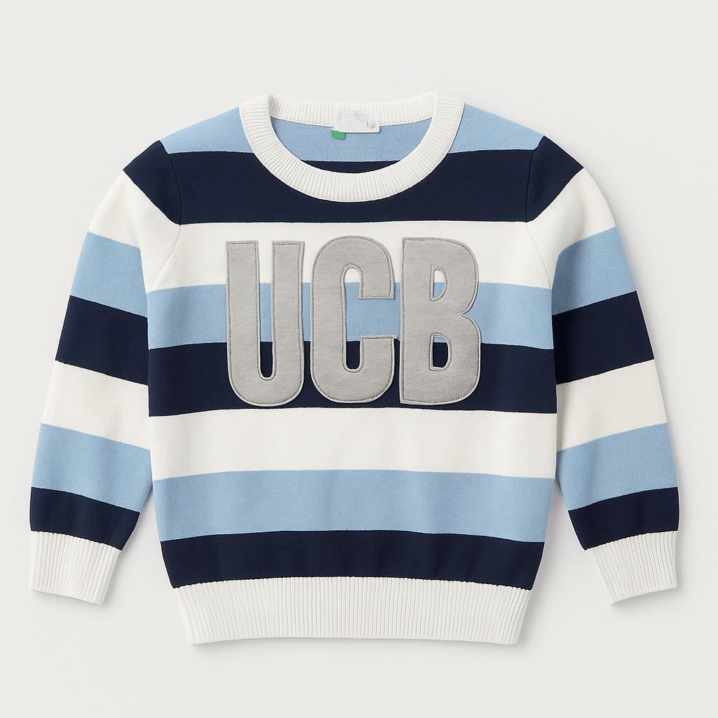 Questo adorabile maglione UCB è perfetto per i piccoli esploratori! Con le sue strisce blu e bianche alternate, trasmette una freschezza estiva e un tocco di eleganza. La grande scritta "UCB" sul davanti in grigio conferisce un accento moderno. La vestibilità comoda e le maniche lunghe lo rendono ideale per le fresche serate primaverili o autunnali. Nonostante sia un capo usato, è in ottime condizioni e pronto per accompagnare il tuo bambino in ogni avventura. Un must-have per un look casual e trendy!
