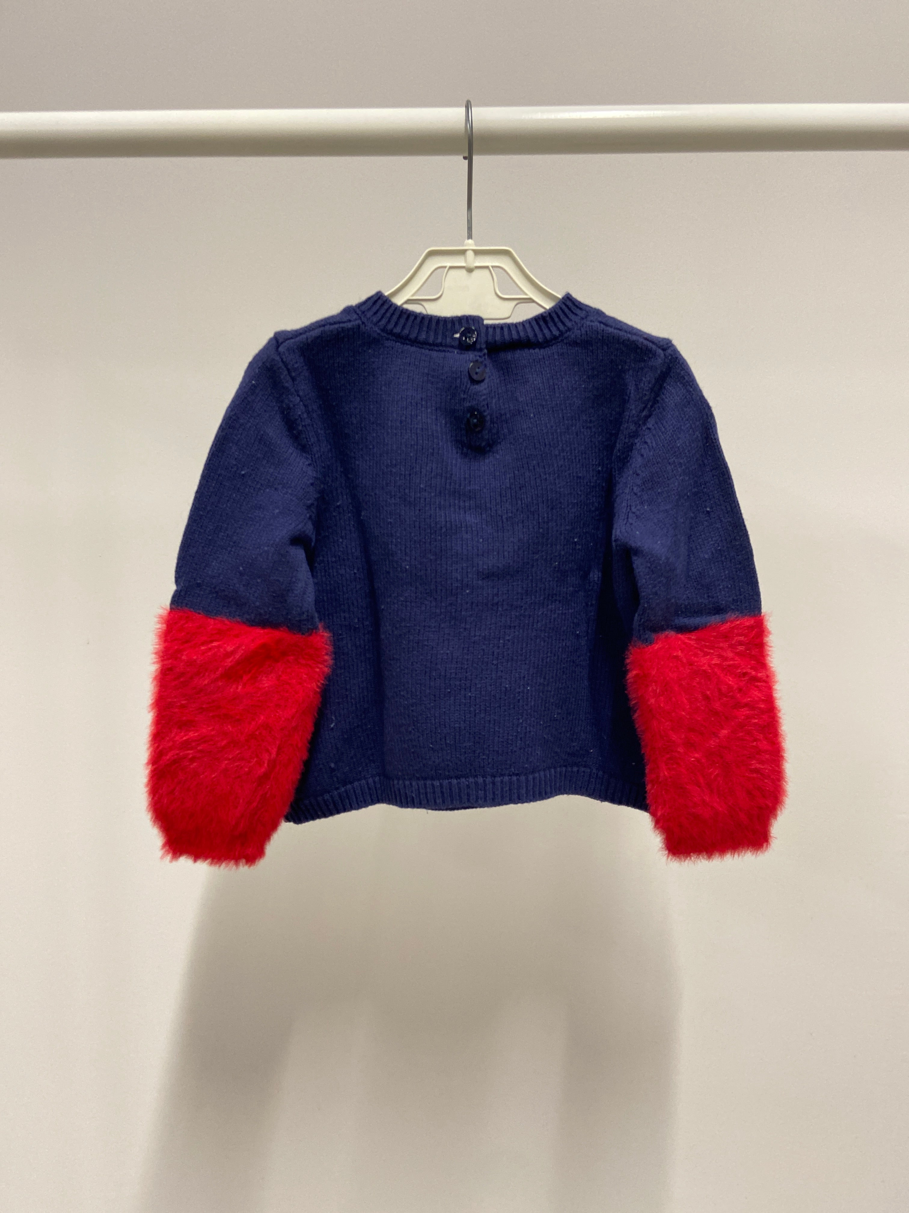 Questo simpatico maglioncino è perfetto per le piccole esploratrici! Realizzato in un caldo e morbido tessuto, il suo colore blu navy è ravvivato da maniche cortissime in pelliccia rossa, che aggiungono un tocco di gioia e originalità. La chiusura con bottoni sul retro lo rende facile da indossare e togliere. Nonostante sia un capo usato, si presenta in ottime condizioni, pronto per portare eleganza e comfort nelle giornate fresche. Un vero tesoro da aggiungere al guardaroba invernale!