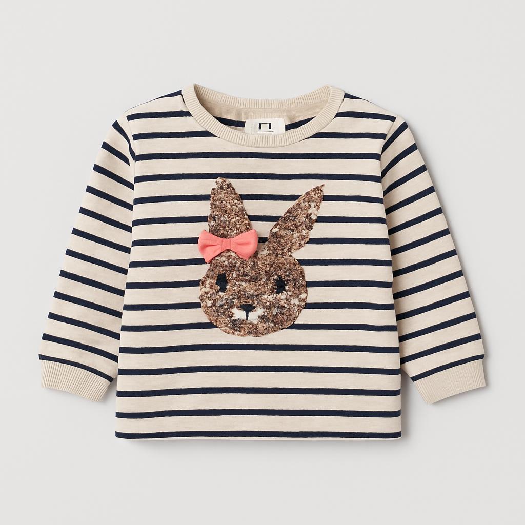 Questa adorabile felpa a righe è un vero e proprio viaggio nel mondo dei colori! La base in un morbido tessuto beige è adornata da righe navy che la rendono super trendy. Sul fronte, spicca un divertente coniglio realizzato con paillettes luccicanti e una dolce fiocchettina rosa che aggiunge un tocco di tenerezza. Le maniche leggermente a sbuffo e il taglio corto la rendono perfetta per le piccole che amano giocare, senza rinunciare a uno stile unico. Anche se è un pezzo usato, si presenta in ottime condizioni, pronta a portare sorrisi e alla felicità delle vostre piccole!