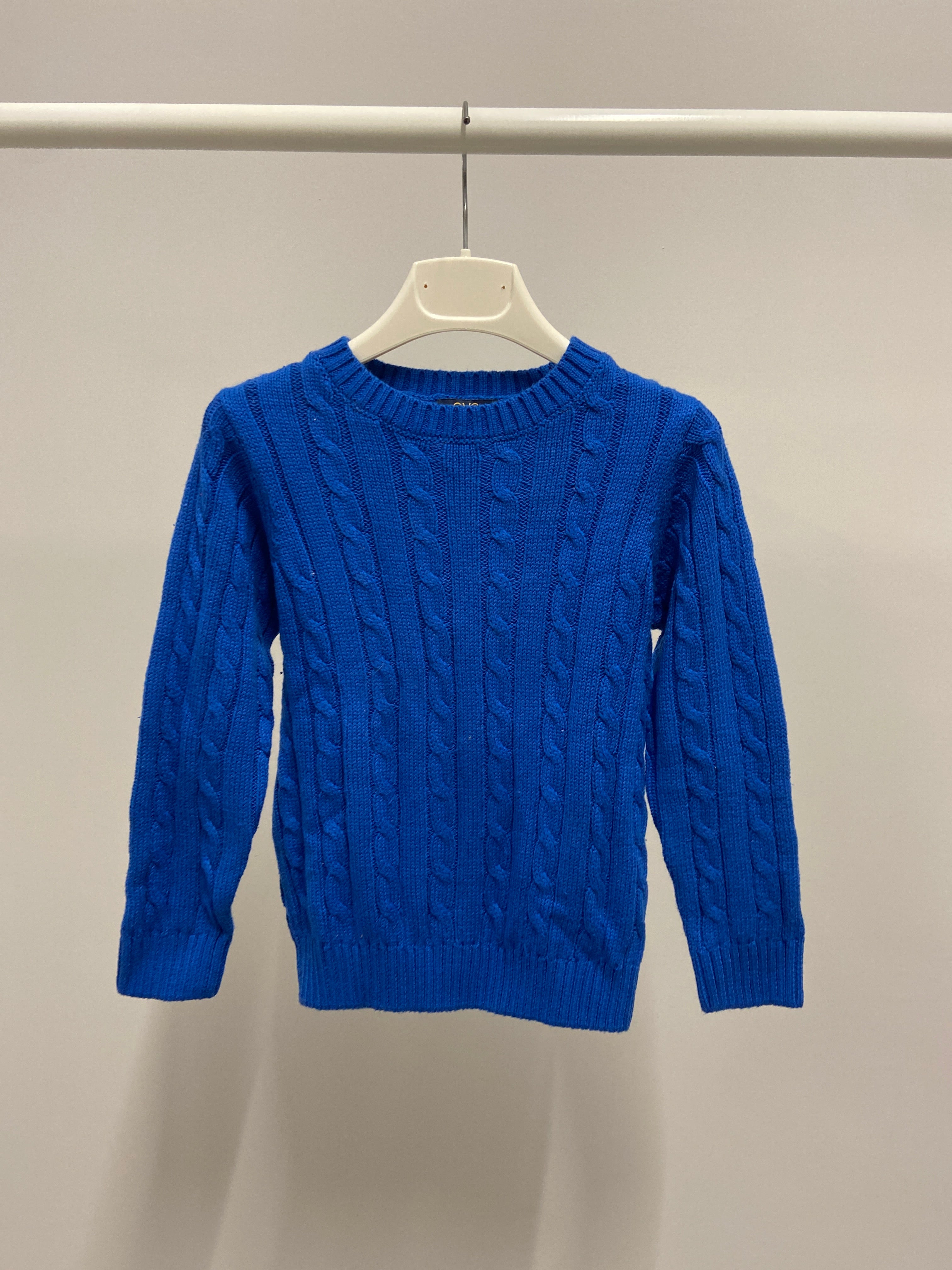 Questo splendido maglione blu elettrico sarà il compagno ideale per le giornate più fresche del tuo piccolo! Realizzato in un caldo e morbido tessuto a maglia con intrecci eleganti, offre comfort e stile in un colpo solo. Il design classico con il collo rotondo e le maniche lunghe lo rende perfetto per essere indossato sopra una camicia o da solo per un look casual. Nonostante sia un capo usato, si presenta in ottime condizioni e porta con sé una storia di avventure. Un must-have per ogni armadio di piccoli esploratori!