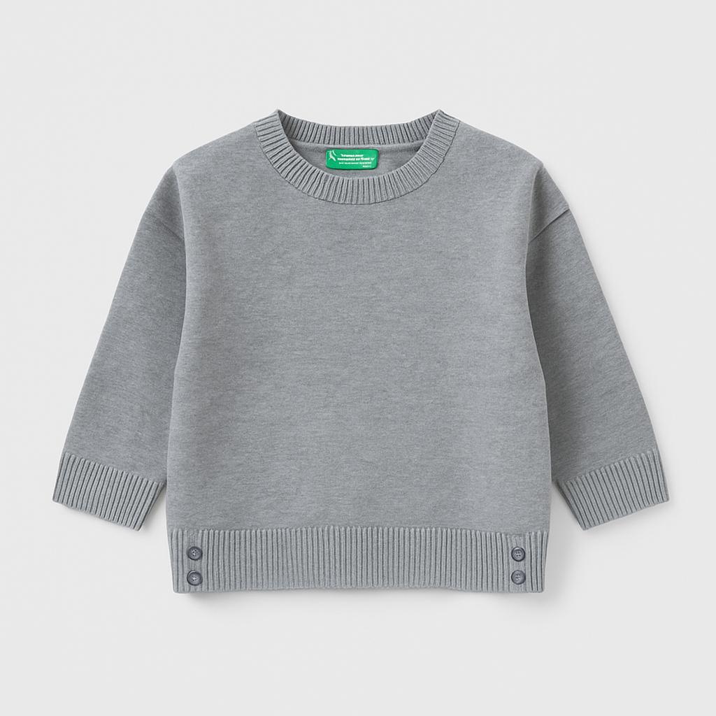 Questo adorabile maglione grigio è il cozy must-have per il guardaroba invernale del tuo bimbo! Realizzato in morbido filato, offre calore e comfort per ogni avventura. Il design a girocollo e le maniche lunghe lo rendono perfetto per essere abbinato a jeans o leggings. I dettagli dei bottoni sulla parte inferiore aggiungono un tocco di stile unico e trendy. Nonostante sia usato, si presenta in ottime condizioni, pronto a coccolare il tuo piccolo in ogni occasione! Un capospalla che coniuga praticità ed eleganza per le fredde giornate invernali.