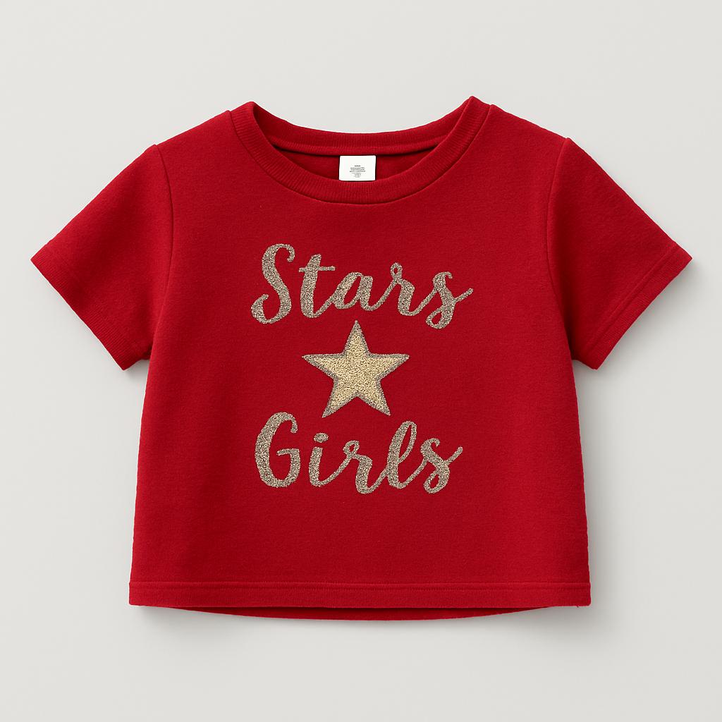 Questo adorabile crop top rosso è perfetto per le piccole stelle del tuo cuore! Con una morbida texture e una scritta scintillante "Stars Girls" impreziosita da una simpatica stella, è ideale per le occasioni speciali o per un look casual e alla moda. Le maniche corte e il design trendy lo rendono comodo da indossare durante le giornate estive e le serate con gli amici. Un capo usato ma in ottime condizioni, che farà brillare il guardaroba della tua fashionista!