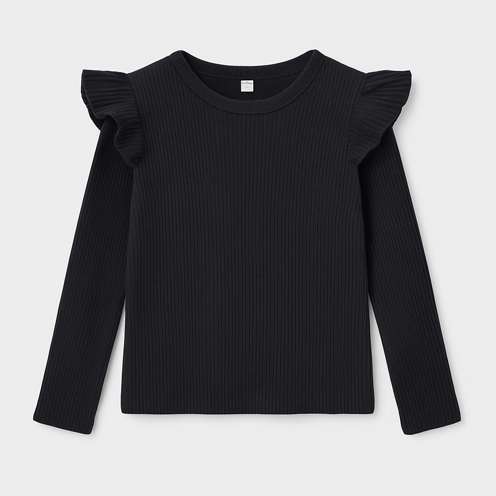 Questa adorabile maglietta nera con volant è un'aggiunta perfetta al guardaroba della tua piccola! Realizzata in morbido tessuto a coste, offre comfort e freschezza. I dettagli con volant sulle spalle aggiungono un tocco di dolcezza e stile, rendendo ogni outfit ancora più speciale. Con le sue maniche lunghe, è ideale per le giornate fresche, perfetta per giocare e divertirsi in ogni occasione. Nonostante sia un capo usato, si presenta in ottime condizioni, pronta a far brillare il look della tua fashionista!