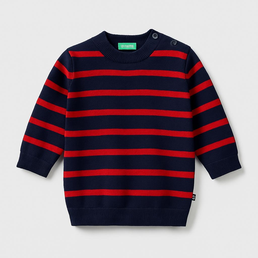 Questo adorabile maglione a righe è un perfetto alleato per i look invernali dei tuoi bimbi! Realizzato in morbido cotone, presenta una combinazione di righe blu navy e rosse, che aggiunge un tocco di vivacità e stile. Con il suo collo alto e i pratici bottoncini sulla spalla, il maglione si indossa facilmente e assicura comfort e calore nelle giornate più fresche. Adatto per giochi all'aperto o per un pomeriggio accogliente in casa, questo capo usato si presenta in ottime condizioni ed è pronto per accompagnare le avventure del tuo piccolo! Un must-have per un inverno alla moda!