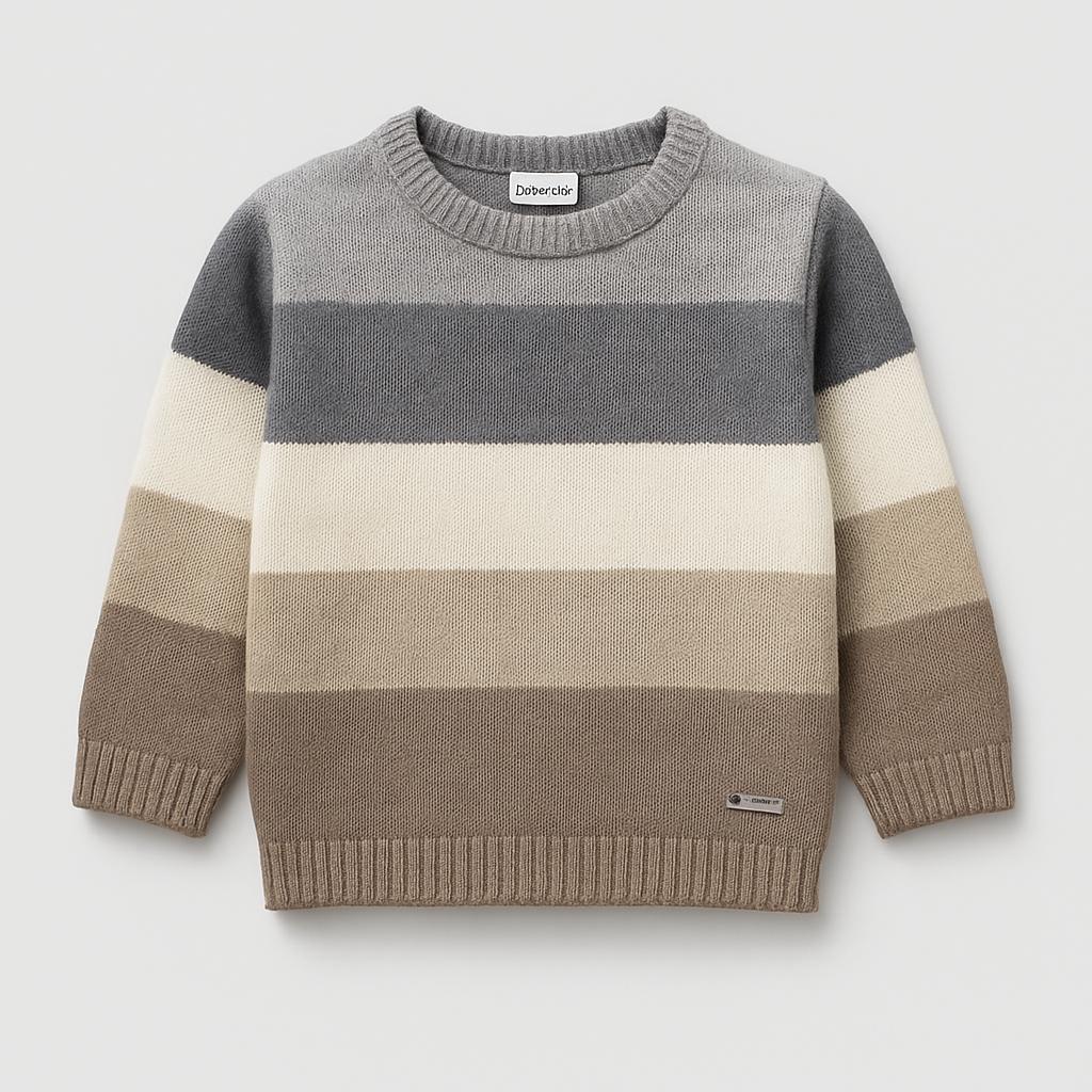 Questo grazioso maglione a righe per bambini è un vero must-have per la stagione invernale! Realizzato in un morbido blend di materiali, offre comfort e calore. Le tonalità neutre di grigio, beige e panna si abbinano facilmente a qualsiasi outfit, rendendolo perfetto per ogni occasione, dai giochi in giardino alle uscite in famiglia. Il taglio leggermente cropped e le maniche a tre quarti conferiscono un tocco moderno, mentre il logo sul fondo aggiunge un pizzico di stile. Nonostante sia un capo usato, il suo splendore è intatto, pronto a rendere ogni outfit speciale!