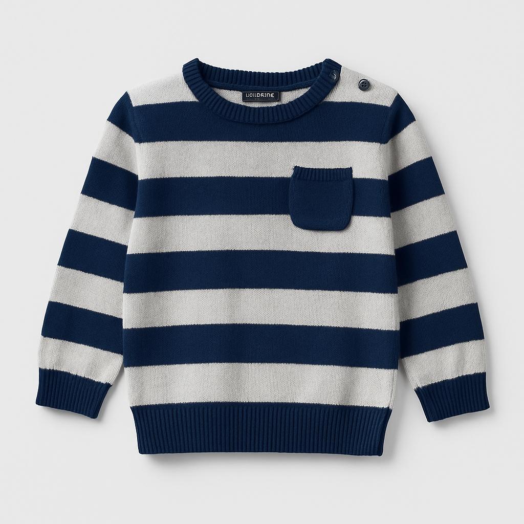 Questo delizioso maglioncino a righe è un capo versatile e alla moda, perfetto per i piccoli esploratori! Realizzato in un morbido mix di fibre, offre comfort e calore durante le giornate più fresche. Il design a righe blu navy e grigio chiaro è semplice ma accattivante, con un grazioso taschino che aggiunge un tocco di stile. I bottoncini sulla spalla facilitano la vestizione, rendendo questo maglioncino ideale per ogni occasione, dai giochi in casa a una passeggiata al parco. Nonostante sia usato, si presenta in ottime condizioni ed è pronto a diventare un favorito nel guardaroba dei tuoi piccoli!