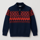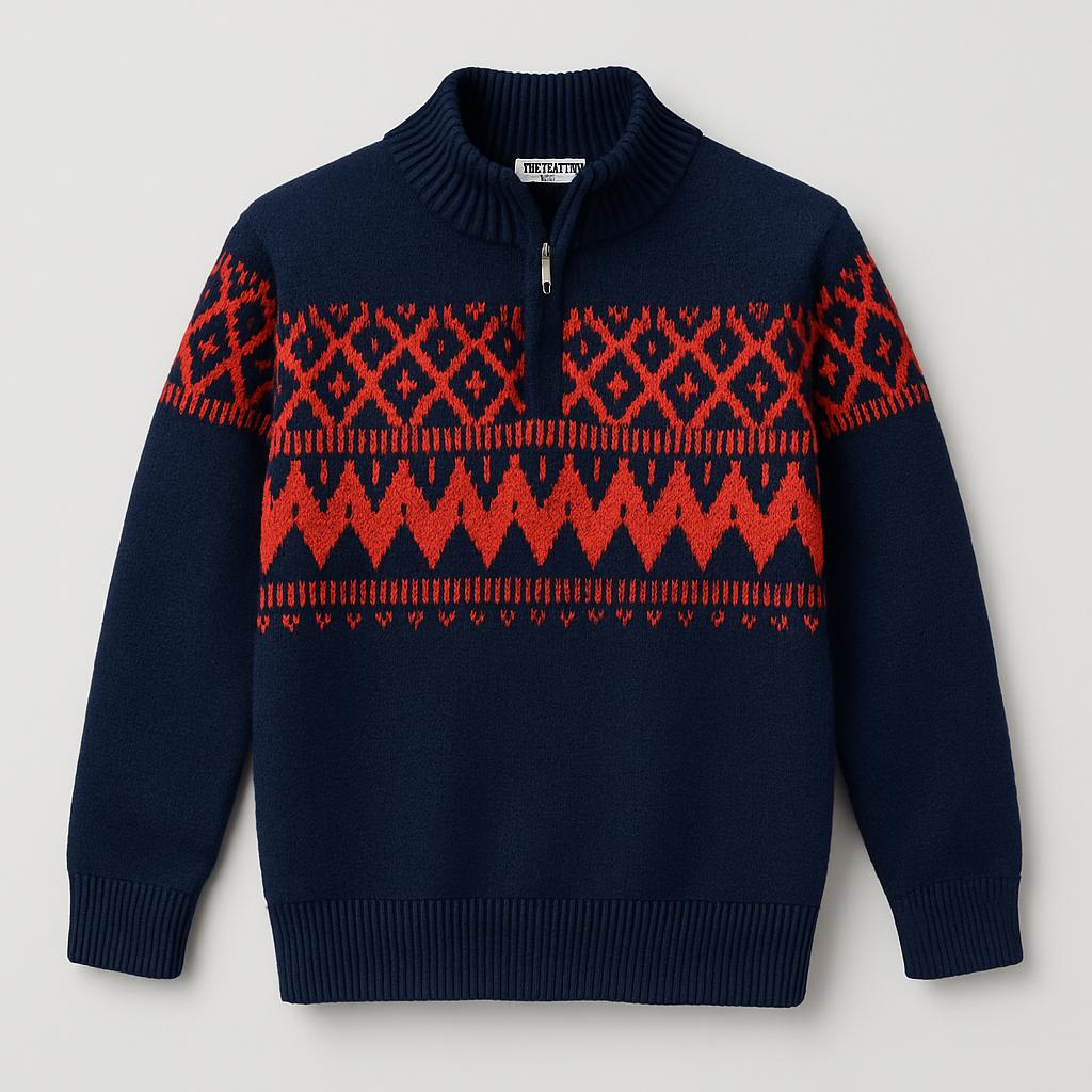 Questo accogliente maglione blu scuro è l'aggiunta perfetta al guardaroba invernale dei tuoi piccoli! Con un delizioso motivo a rombi rossi e arancioni, aggiunge un tocco di vivacità e allegria ai look invernali. Il colletto alto con zip permette di riscaldarsi durante le giornate più fredde, mantenendo uno stile trendy e pratico. Realizzato in un morbido materiale, garantisce comfort e calore per giochi all'aperto o avventure in famiglia. Anche se usato, è in ottime condizioni e pronto per essere indossato da un piccolo esploratore!