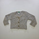 Questo delizioso cardigan in maglia è il capo perfetto per le giornate fresche! Realizzato con un morbido filo misto, il suo caldo colore tortora è ideale per abbinamenti versatili. Con il suo design a V e i tre bottoni in legno, regala un tocco di stile rustico e affascinante. Le maniche a tre quarti lo rendono pratico e comodo per ogni occasione, sia per un’uscita in famiglia che per momenti di gioco. Nonostante sia usato, si presenta in ottime condizioni, pronto a diventare l'alleato delle piccole avventuriere stilose!