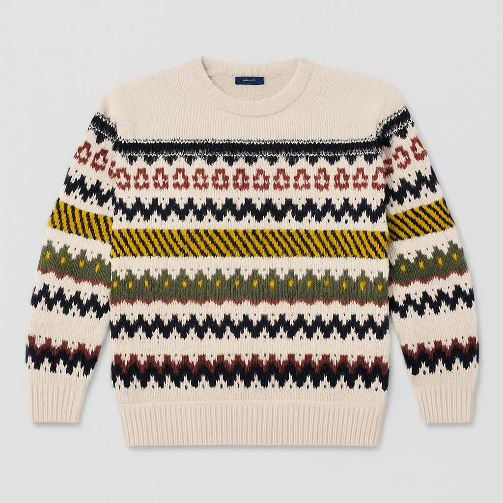 Questo caldo e accogliente maglione a righe multicolore è il capo ideale per le giornate fredde! Realizzato in morbido tessuto, presenta un meraviglioso motivo geometrico che unisce tonalità di crema, verde, rosso e giallo, perfetto per aggiungere un tocco di allegria al guardaroba del tuo bambino. Le maniche lunghe e il collo rotondo garantiscono calore e comfort, rendendolo perfetto per essere indossato sopra una maglietta o da solo. Nonostante sia un capo usato, si presenta in ottime condizioni e porterà sicuramente un sorriso durante le avventure invernali! Un must-have per i piccoli che amano divertirsi stando al caldo e alla moda!