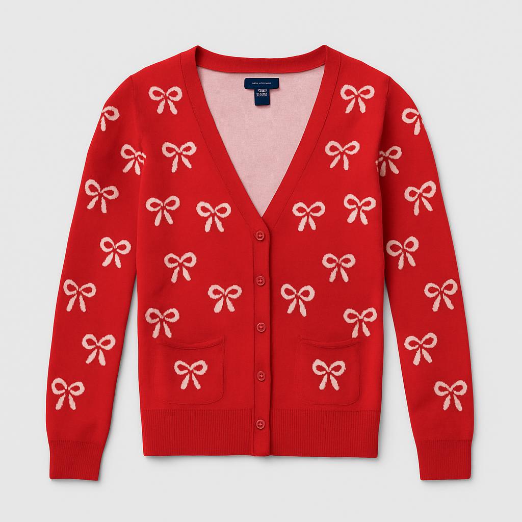 Questo adorabile cardigan rosso è un'aggiunta incantevole al guardaroba della tua bimba! Decorato con deliziose fantasie di fiocchetti bianchi, trasmette un'atmosfera giocosa e festosa. Realizzato in un morbido tessuto, assicura comfort e calore, perfetto per le fresche giornate autunnali e invernali. I bottoni frontali e le tasche sul davanti aggiungono un tocco pratico e carino. Nonostante sia usato, si presenta in ottime condizioni e sarà sicuramente amato da qualsiasi piccola amante della moda. Un cardigan perfetto per completare qualsiasi outfit!