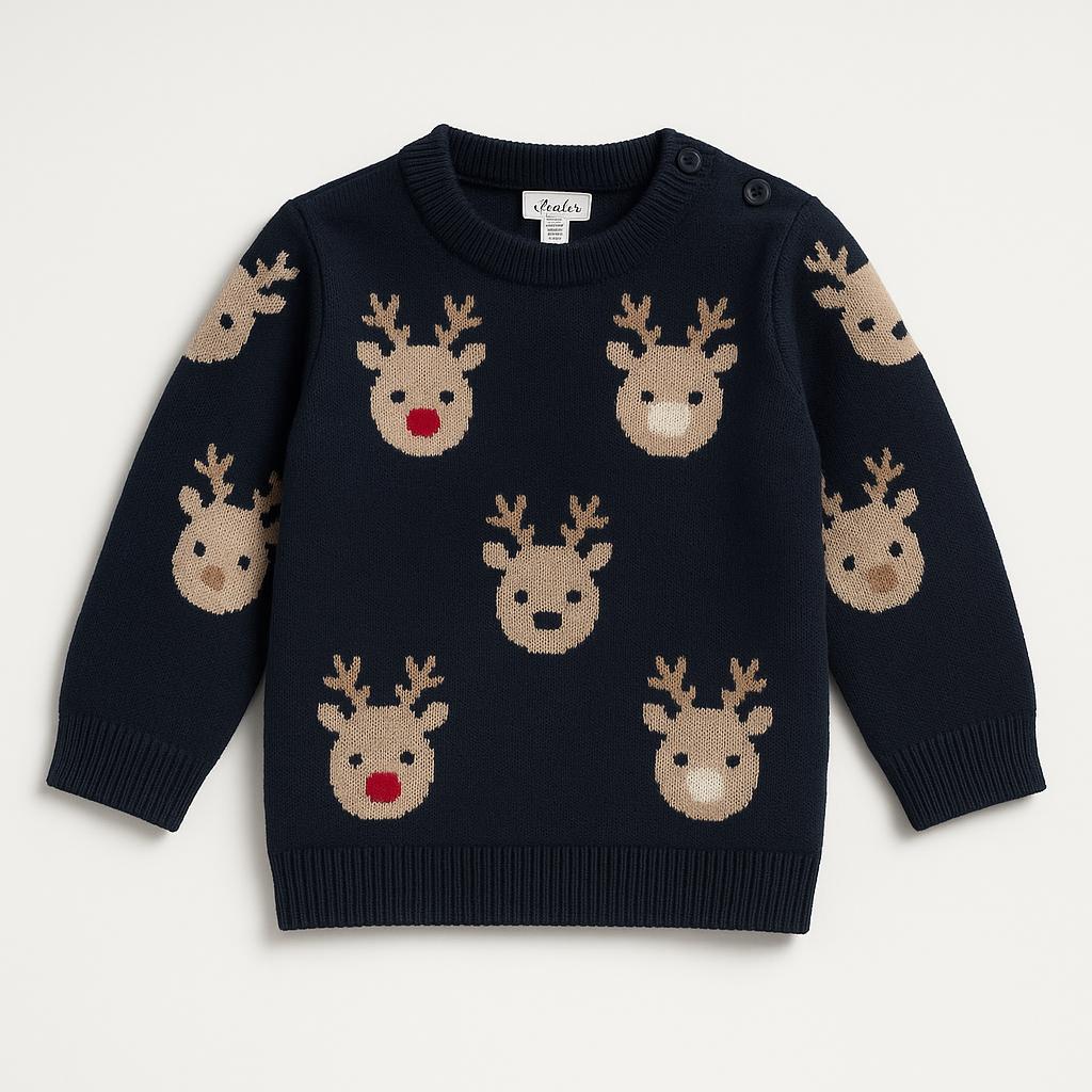 Questo adorabile maglione di marca Benetton è perfetto per rendere le giornate invernali ancora più speciali! Realizzato in morbido cotone, presenta una base blu scuro ornata da simpatici renne con corna e nasi rossi, portando un tocco festivo al guardaroba dei più piccoli. Le maniche lunghe e il collo con bottoni garantiscono calore e comfort, mentre il design giocoso lo rende ideale per le feste o per una giornata di gioco. Nonostante sia usato, il maglione è in ottime condizioni e pronto a far brillare il sorriso di ogni bambino! Un capo che unisce stile e praticità per un inverno da sogno!