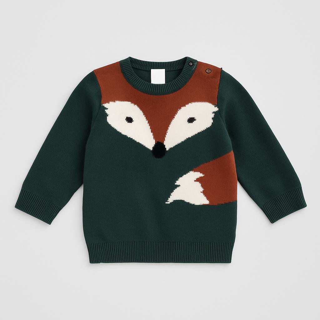 Questo adorabile pullover per bambini è perfetto per le piccole avventure invernali! Realizzato in morbido knit verde scuro, è adornato da un irresistibile design di volpe sul fronte, con dettagli in arancione e nero che catturano l'attenzione. Le maniche lunghe e il colletto a coste garantiscono comfort e calore, rendendolo ideale per le giornate più fredde. Nonostante sia un capo usato, è in ottime condizioni e pronto a essere indossato da un altro piccolo amante della natura. Questo maglione unisce stile e funzionalità, perfetto per ogni esplorazione!